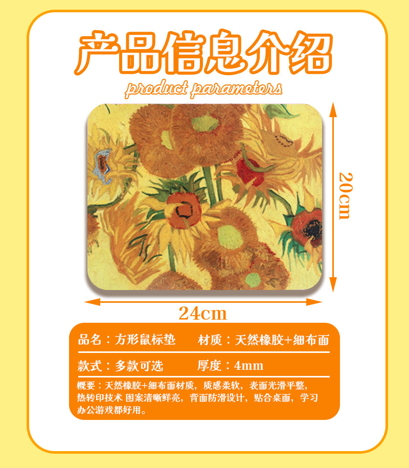 Коврик для мыши с маслом Ван Гога, для дома и офиса, маленький, утолщенный, для игр и киберспорта