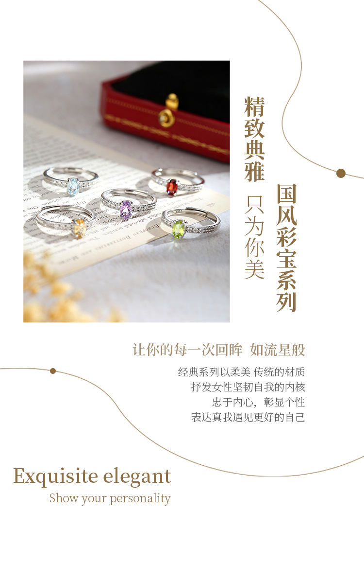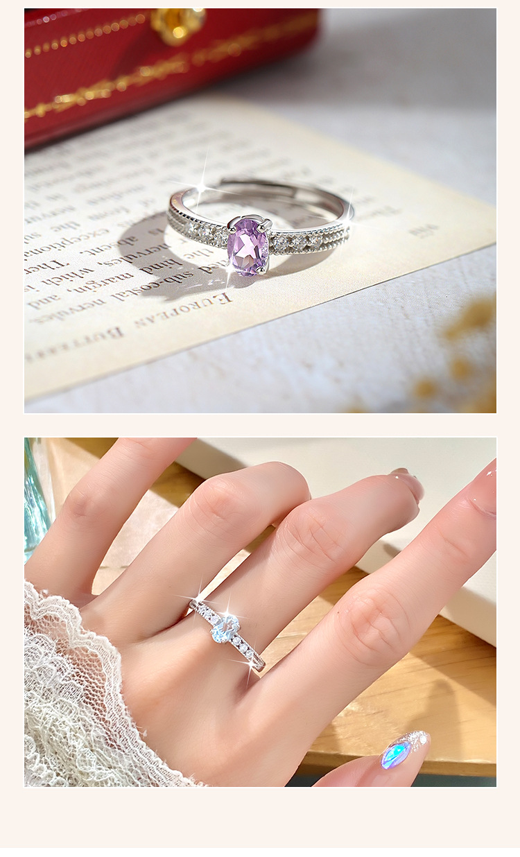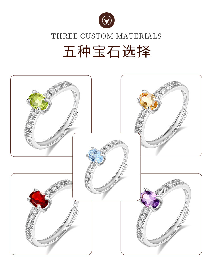 Кольцо из серебра S925 с натуральным цветным драгоценным камнем, стиль легкой роскоши, регулируемое кольцо на указательный палец, кольцо на средний палец для женщин