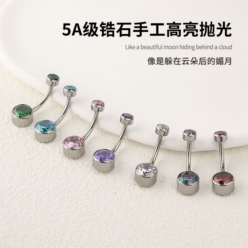 F136 титановое сплавное кольцо для пупка с круглым цирконом и опалом внутренней резьбой
