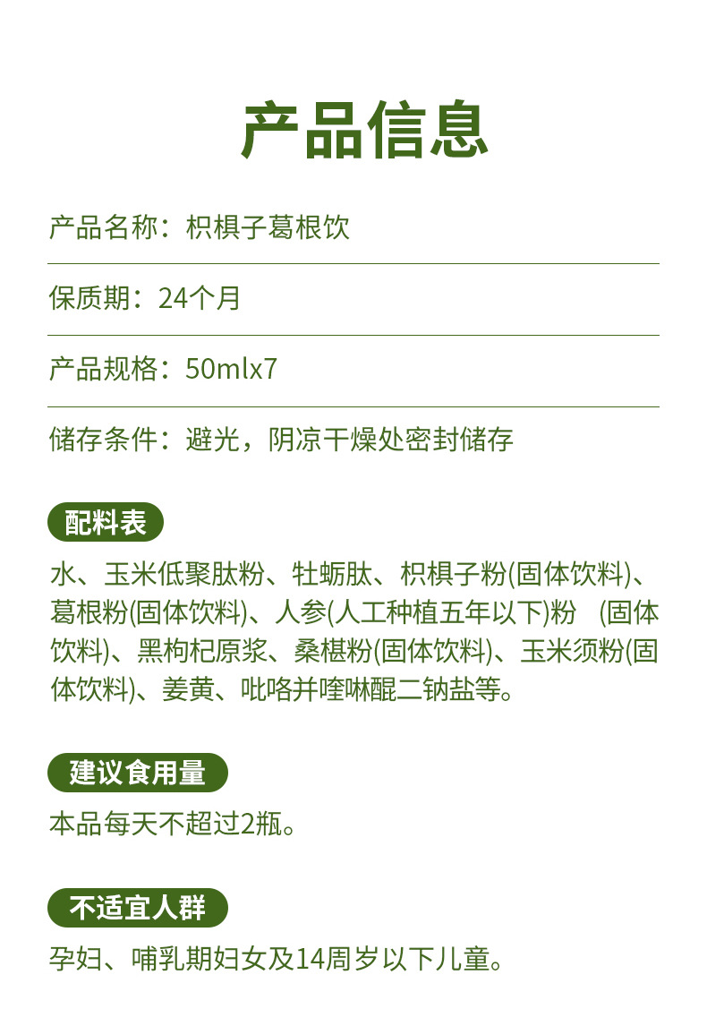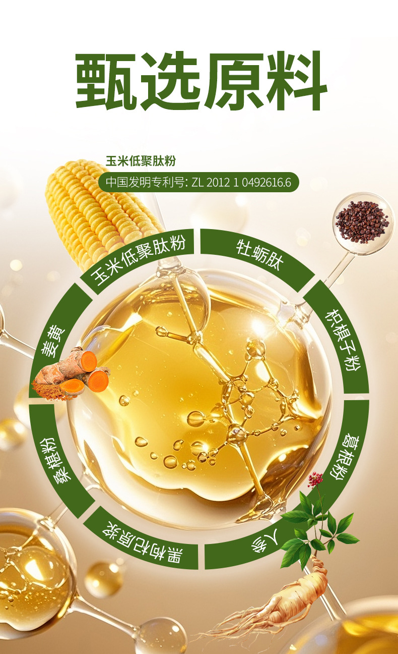 Основные сырьевые материалы Water, corn oligopeptide powder, oyster peptide, citrus seed powder (solid drink), kudzu root powder (solid drink), ginseng (artificially cultivated for less than five years) powder