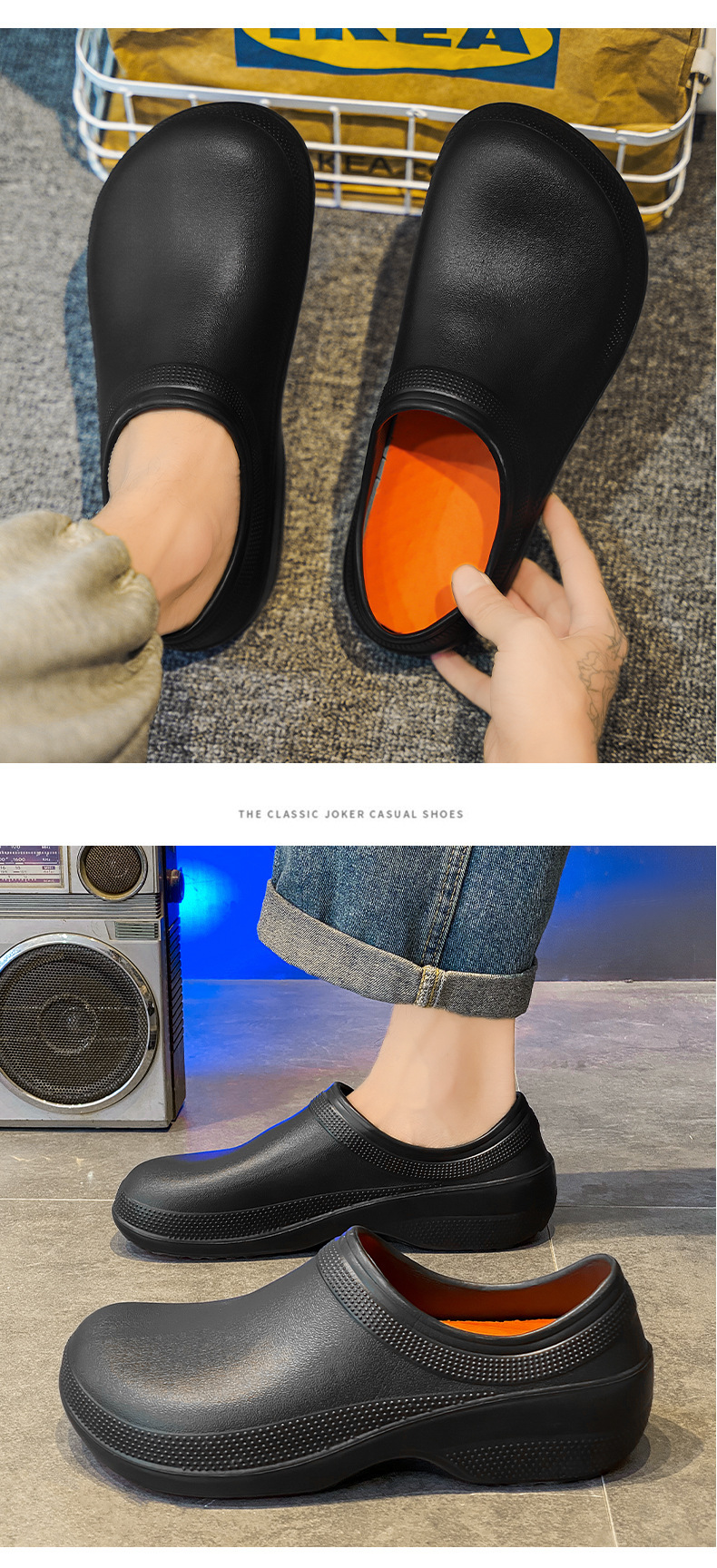 Оптовые мужские резиновые рабочие туфли без отверстий Crocs, нескользящие, износостойкие, водонепроницаемые, для отелей, столовых и ресторанов