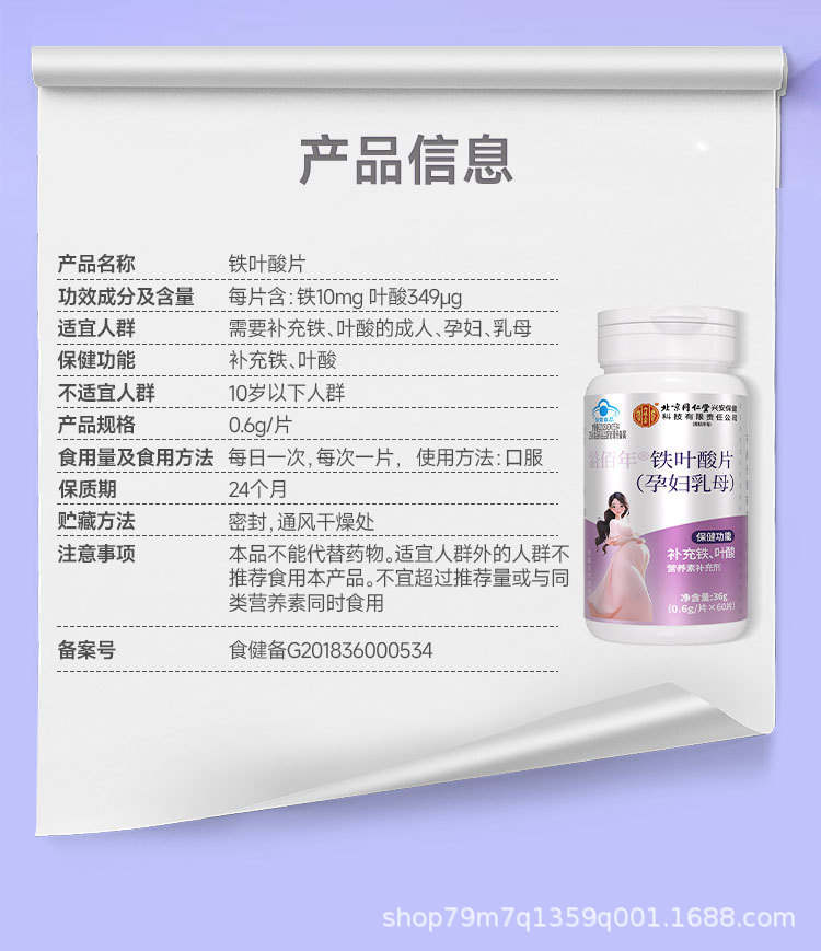 Таблетки железа и фолиевой кислоты для беременных и кормящих женщин от Пекинского Тонгрен Иннер Корт