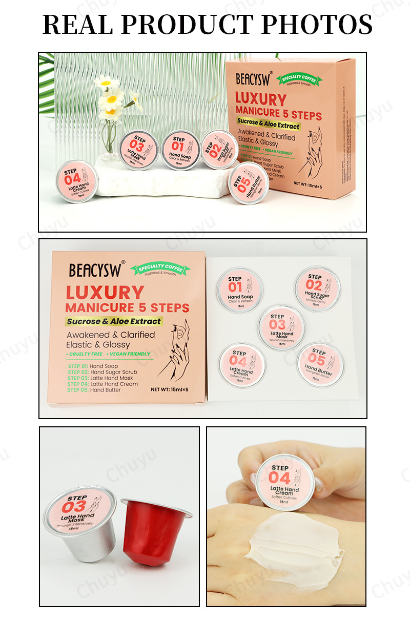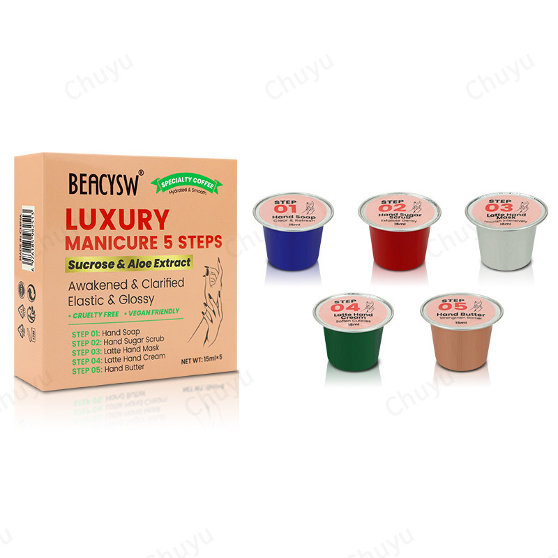 Набор по уходу за руками из пяти предметов от производителя, отбеливание, эксфолиация, увлажнение, маска для рук салонного качества, сахарный скраб, крем для рук