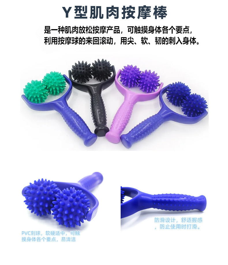 刺球肌肉按摩棒双球滚轴健身棒Y型瑜伽瘦腿棒肌肉放松按摩滚轮棒