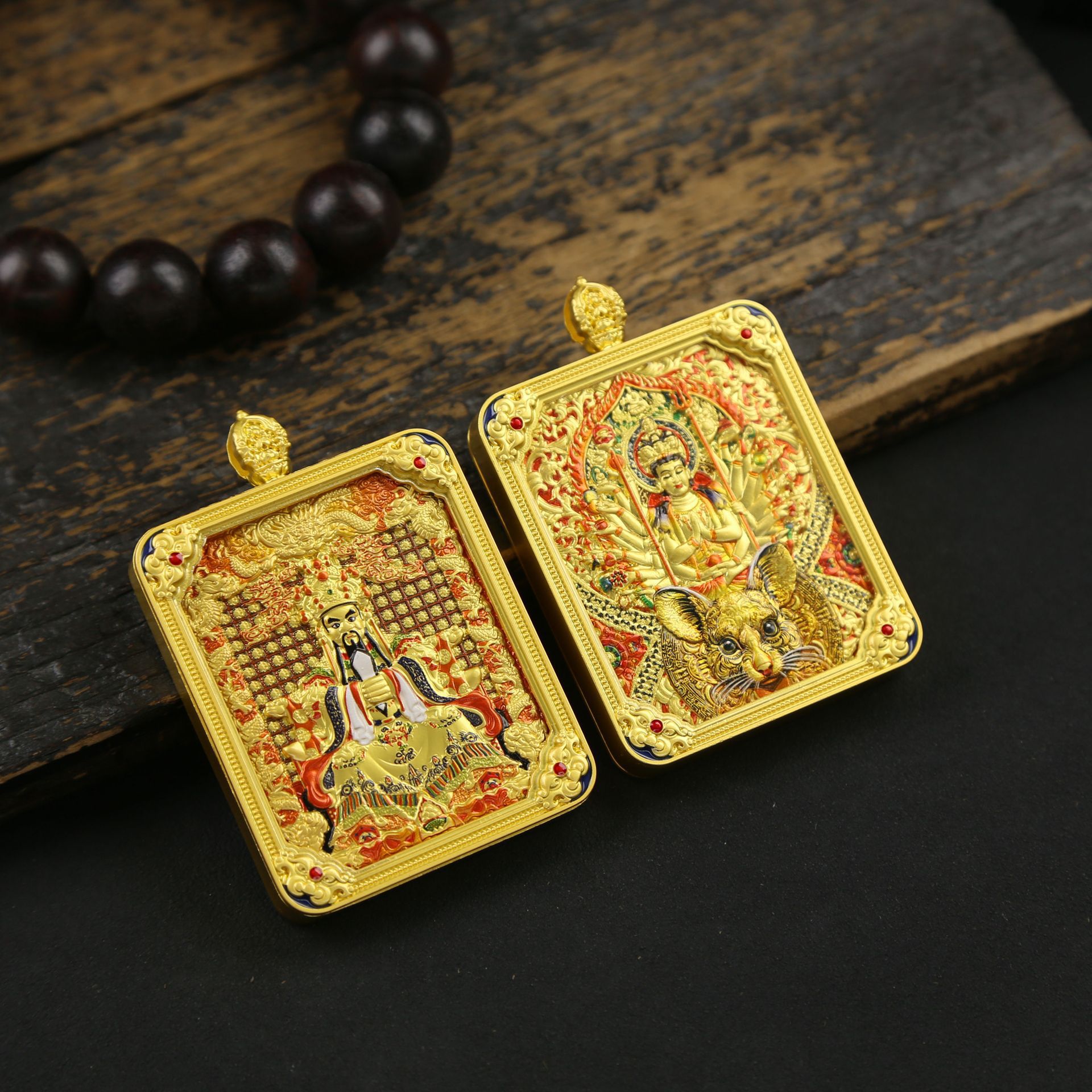 Ожерелье с подвеской Тханка Зодиакального Животного Стража с восемью Стражами и пятью Богами Богатства на веревке