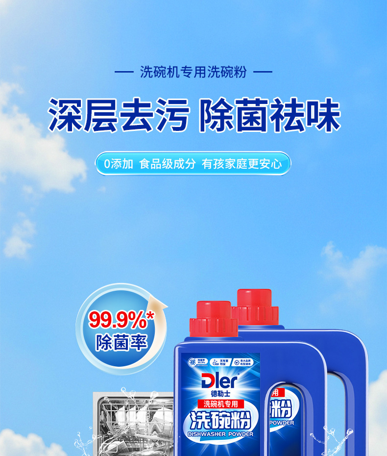 Порошок для мытья посуды Dler 1кг, расходные материалы для посудомоек, соль для мытья посуды