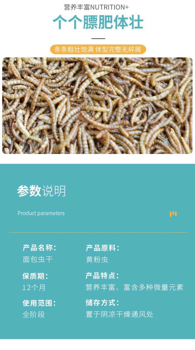 Сушеные мучные черви, корм для попугаев, хомяков, черепах, дроздов, высокобелковый специальный корм