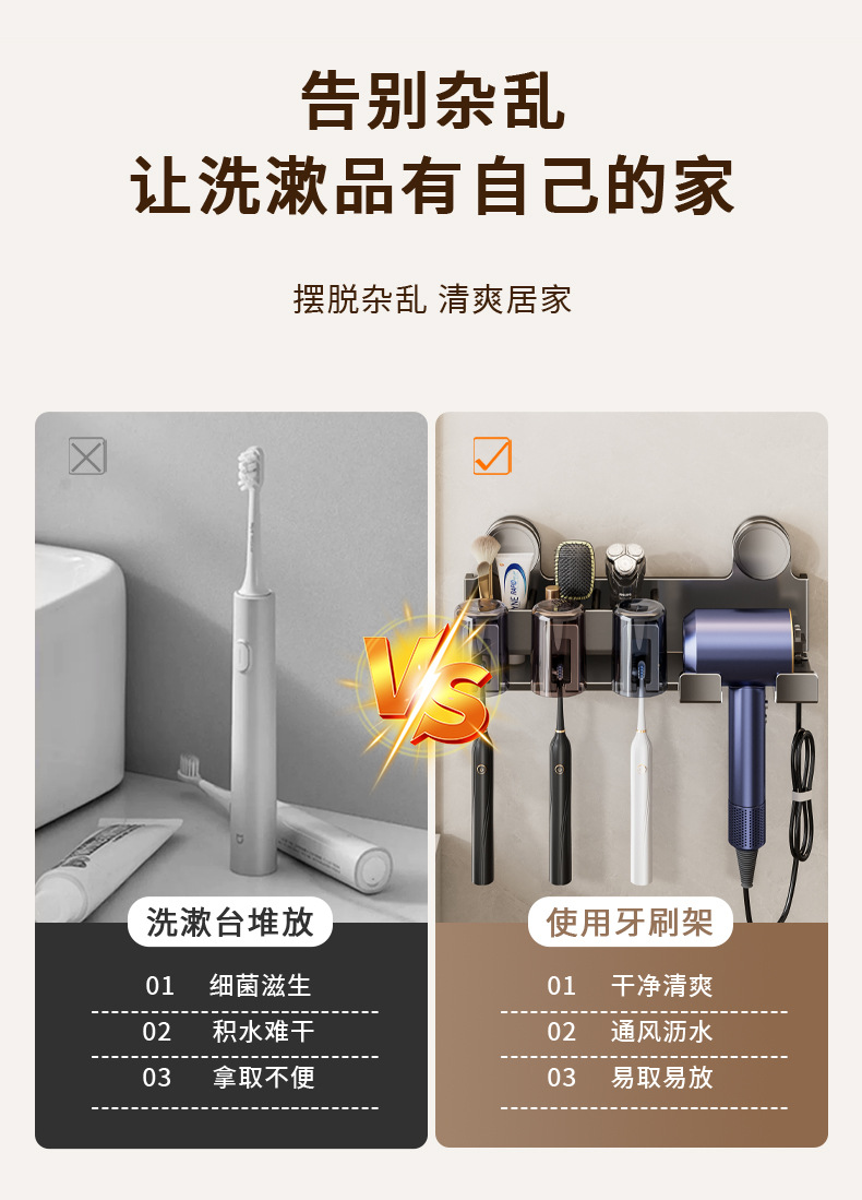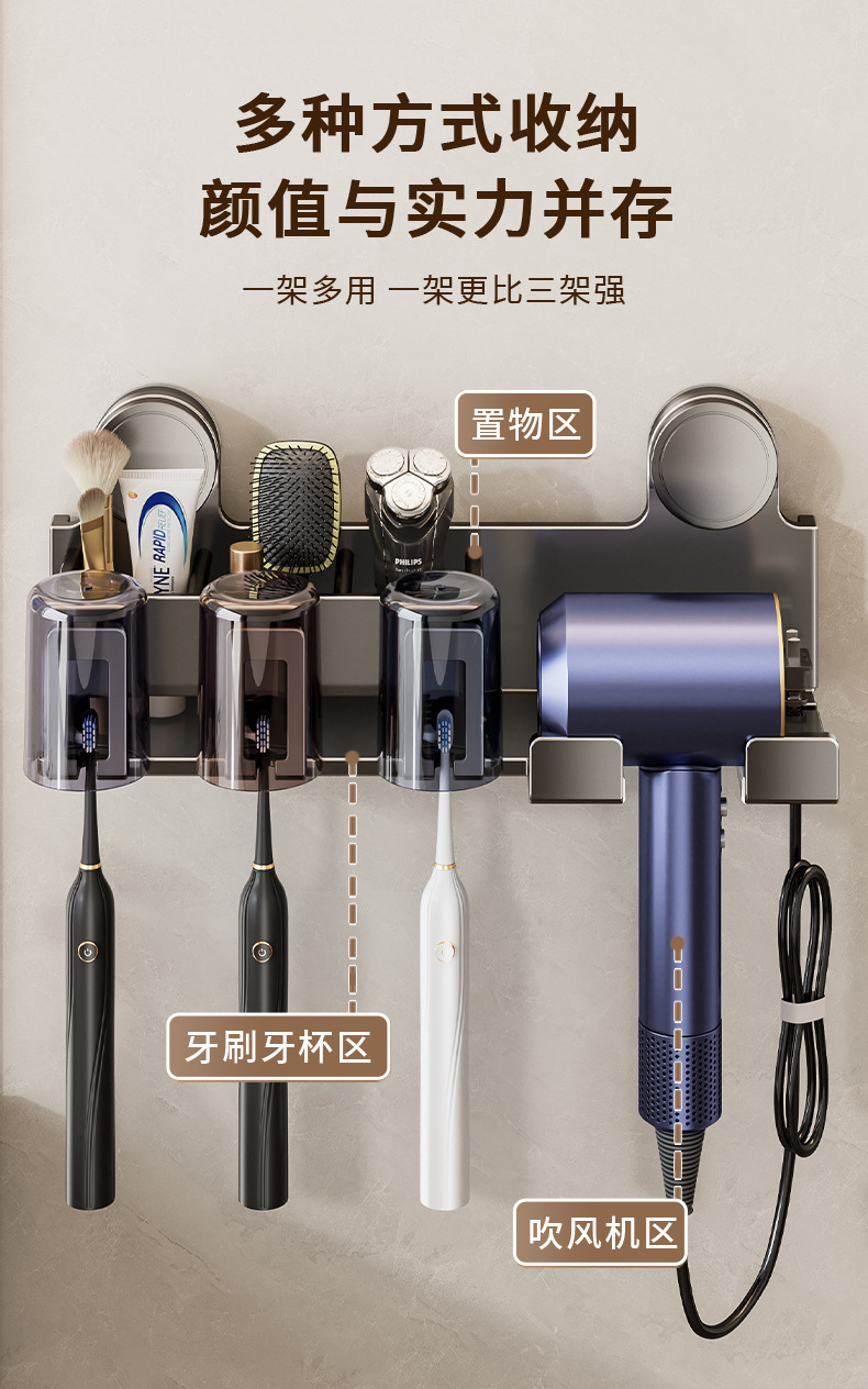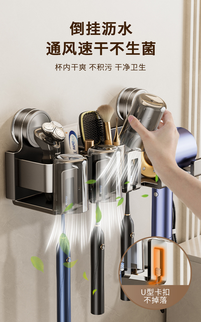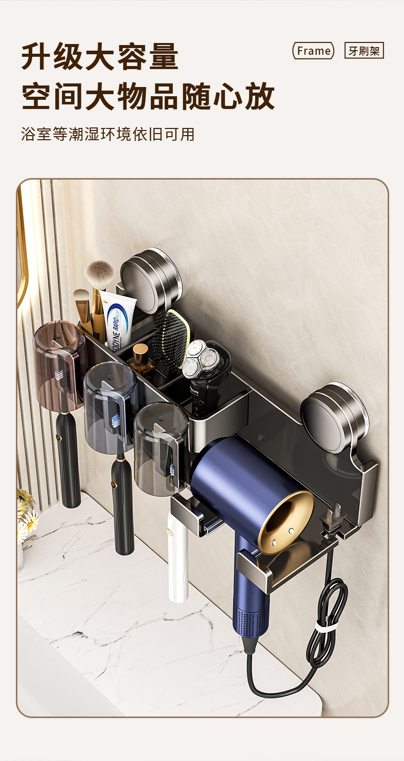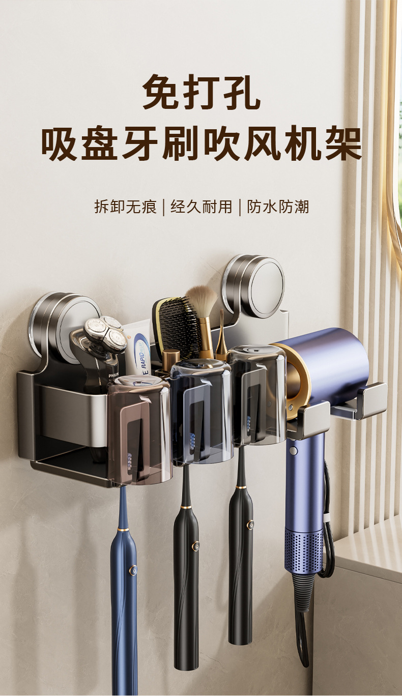 Держатель для зубных щеток на присоске, настенный, без сверления, держатель для фена в ванной, органайзер для зубной пасты и ополаскивателя рта