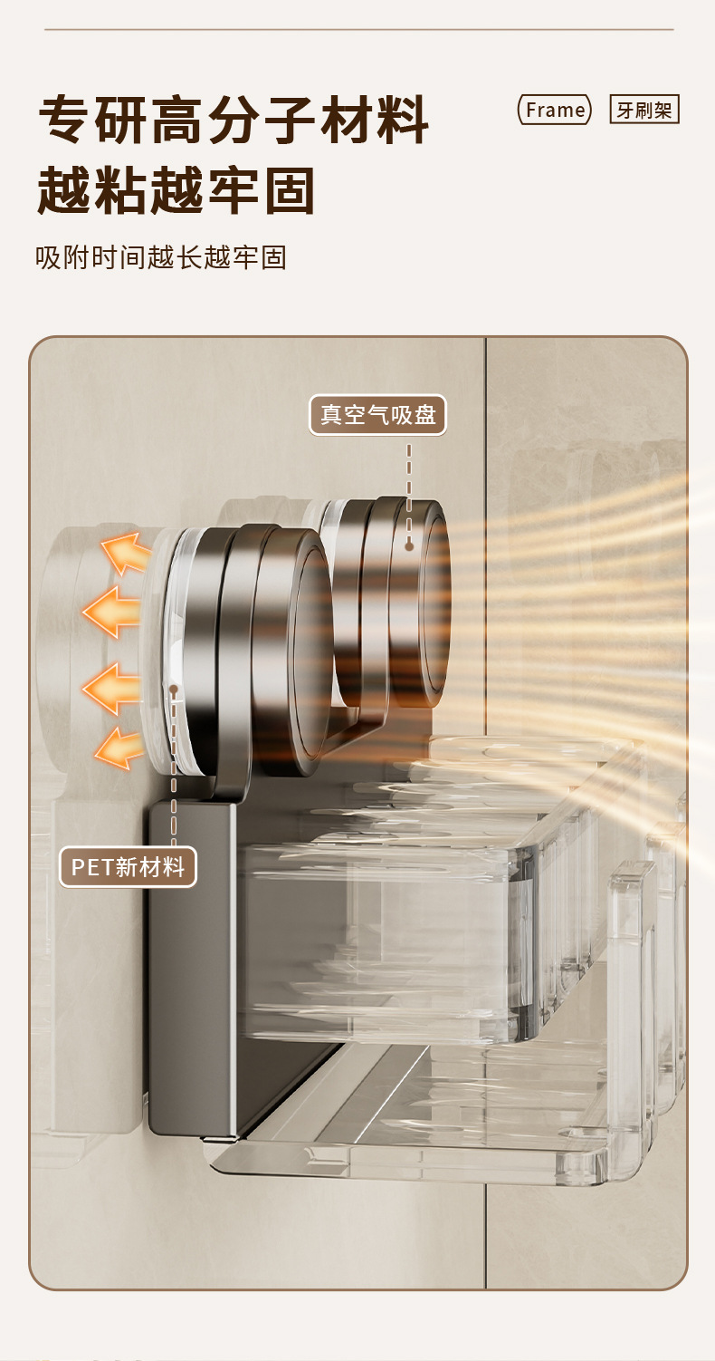 (4)吸盘贴墙后用力按压10秒,空气排尽后再向右拧紧吸盘即可使用。