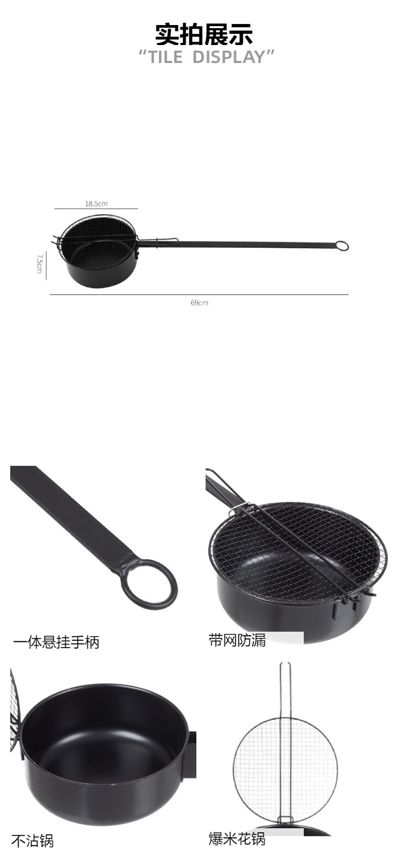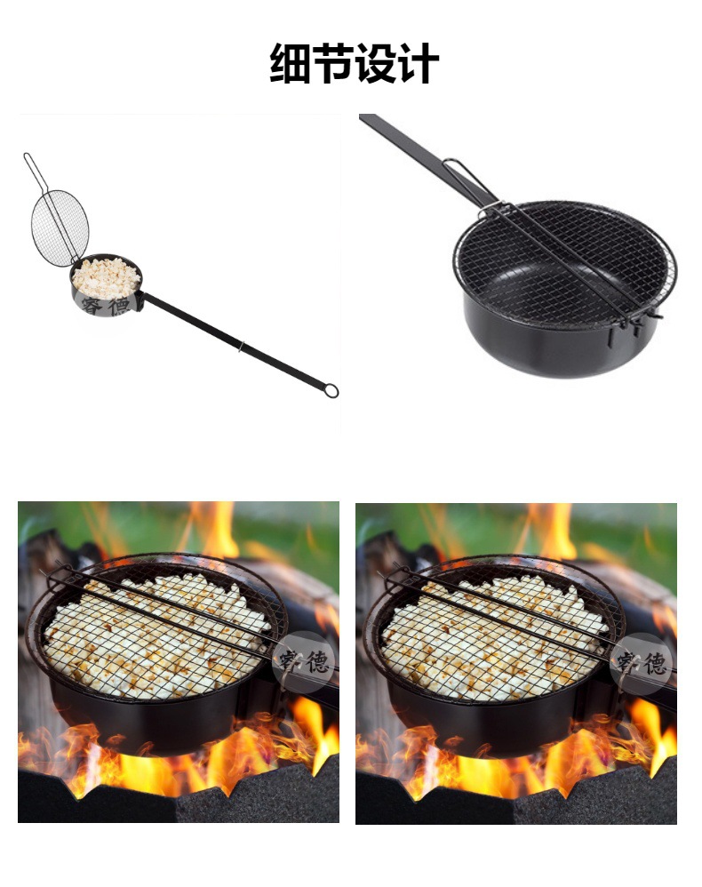 Портативная посуда для кемпинга, кастрюля для попкорна с удлиненной ручкой и сетчатой крышкой, антипригарная для супа, рагу и выпечки