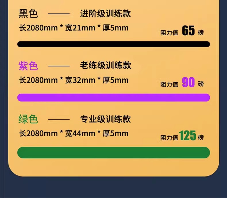2080*4.5*21mm(25-65LB)黑色 克重:188g 装箱数:70个 包装尺寸:17.3*16+3.5