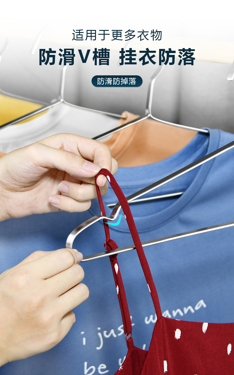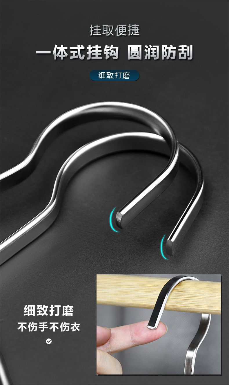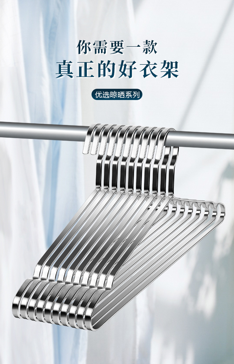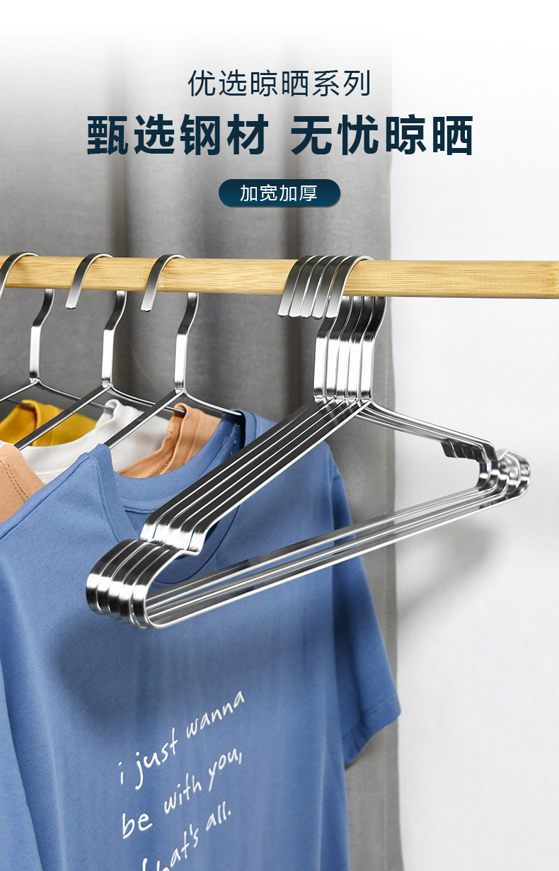 Оптовая плоская вешалка для одежды из нержавеющей стали 304, утолщенная 8 мм, противоскользящая, для сушки одежды, вешалка для взрослых
