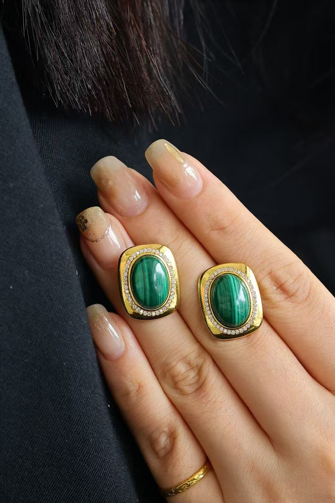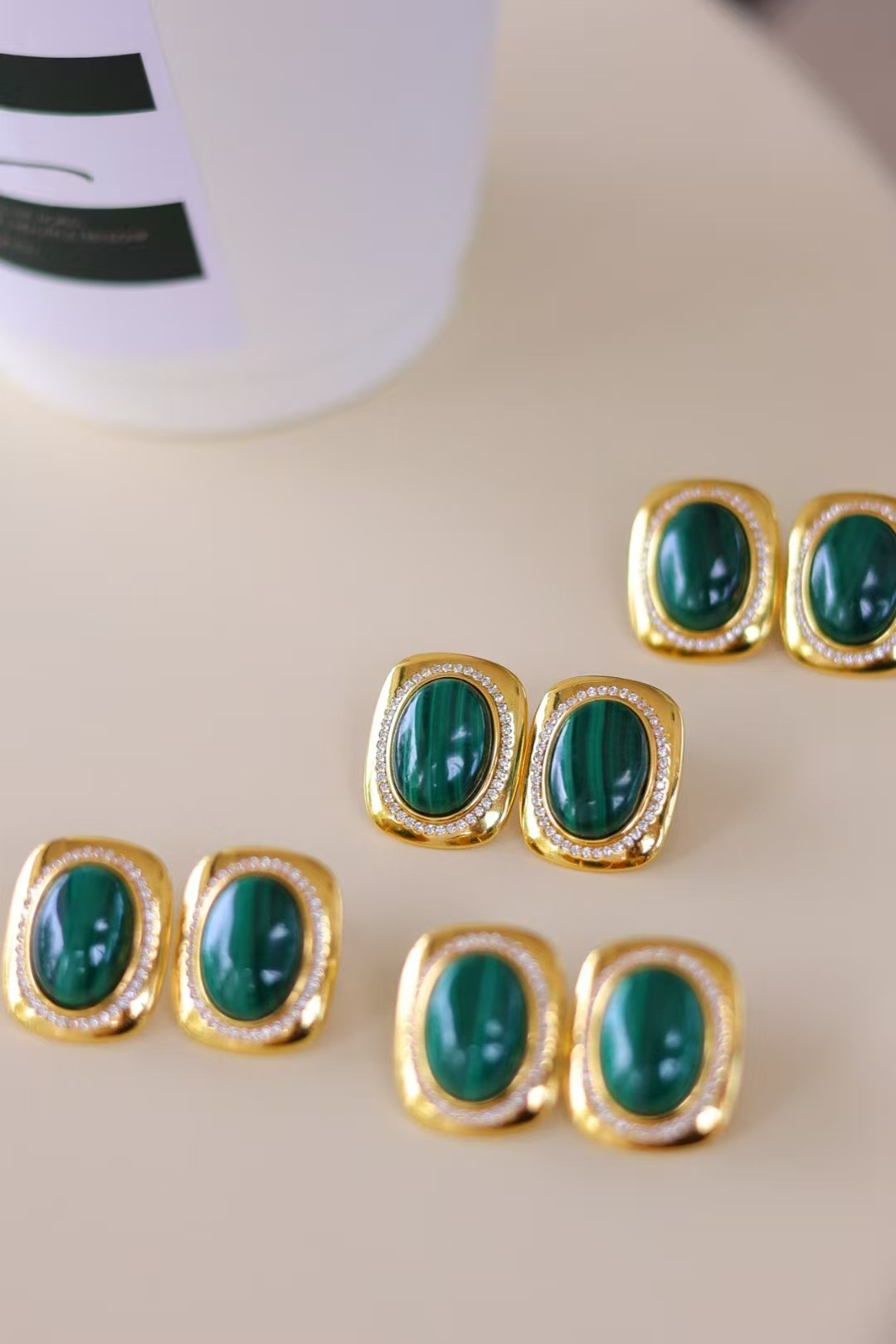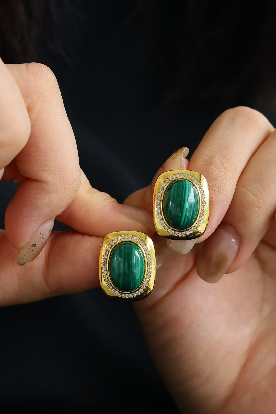 Серьги из натурального малахита, стерлинговое серебро, средневековый винтажный стиль, европейский и американский ретро, элегантный и простой дизайн