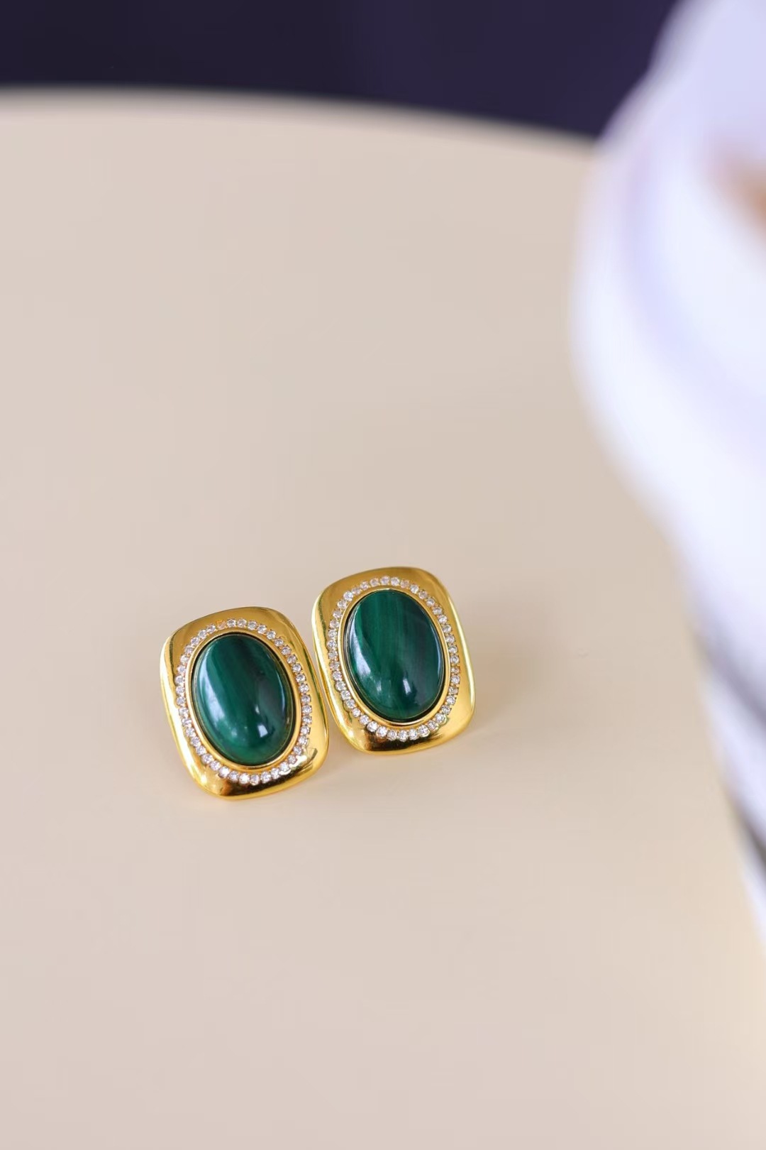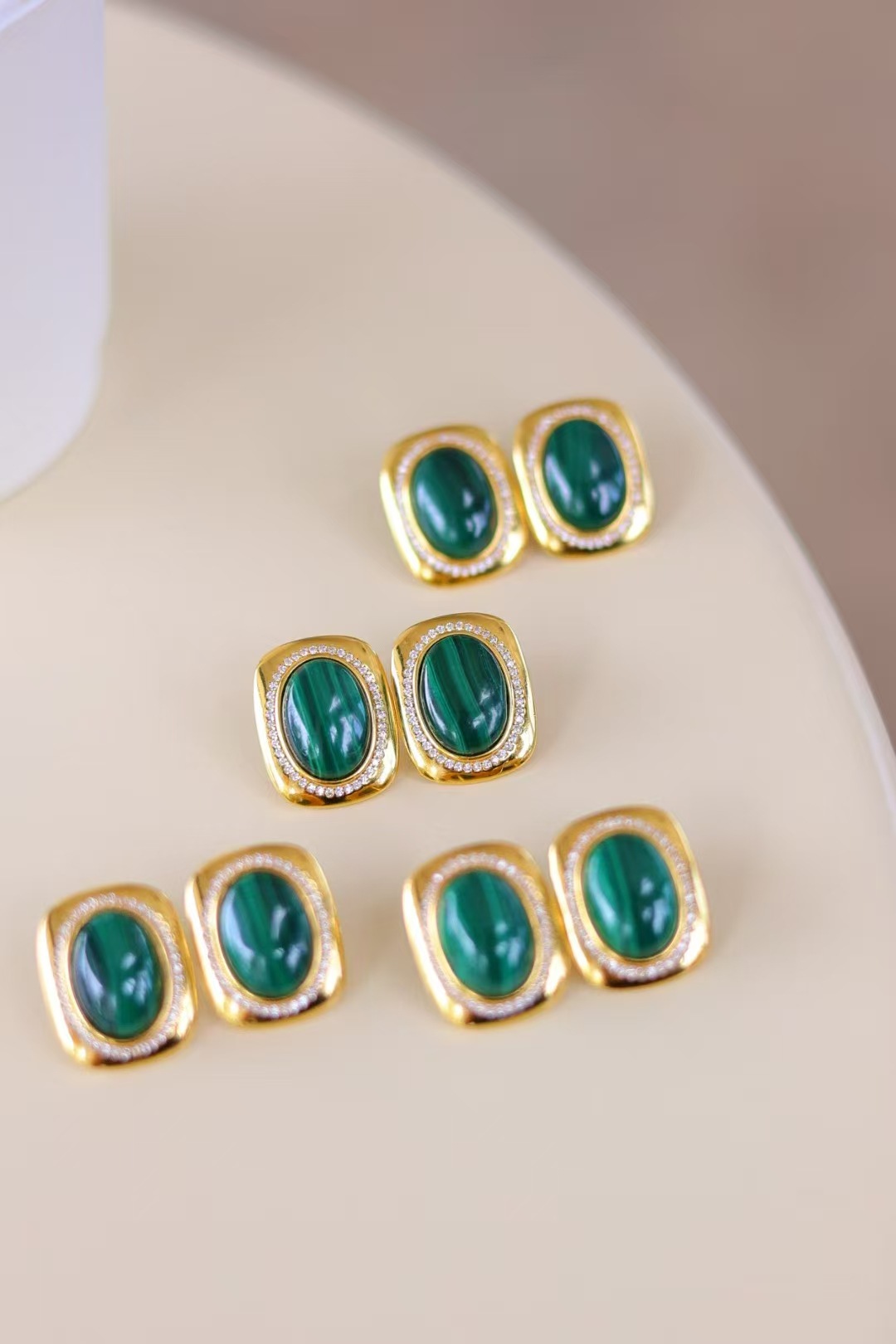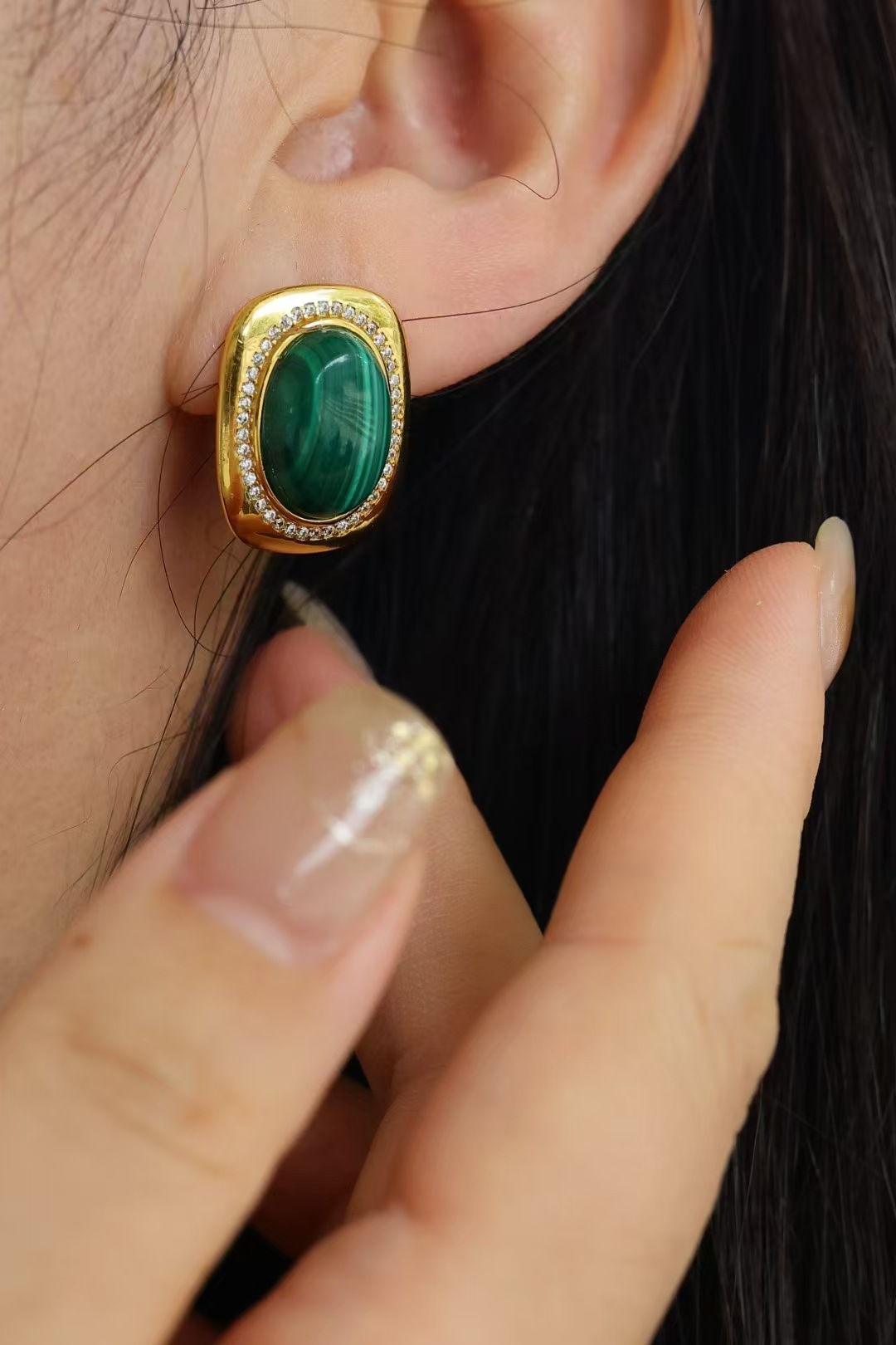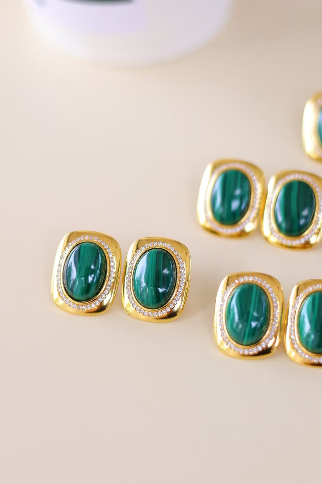 Серьги из натурального малахита, стерлинговое серебро, средневековый винтажный стиль, европейский и американский ретро, элегантный и простой дизайн