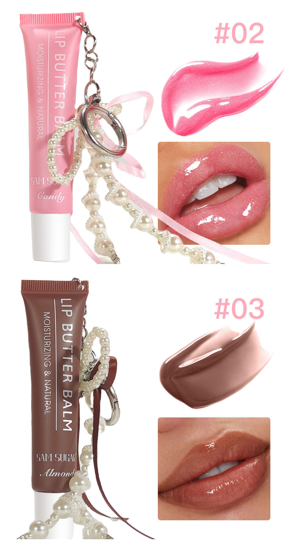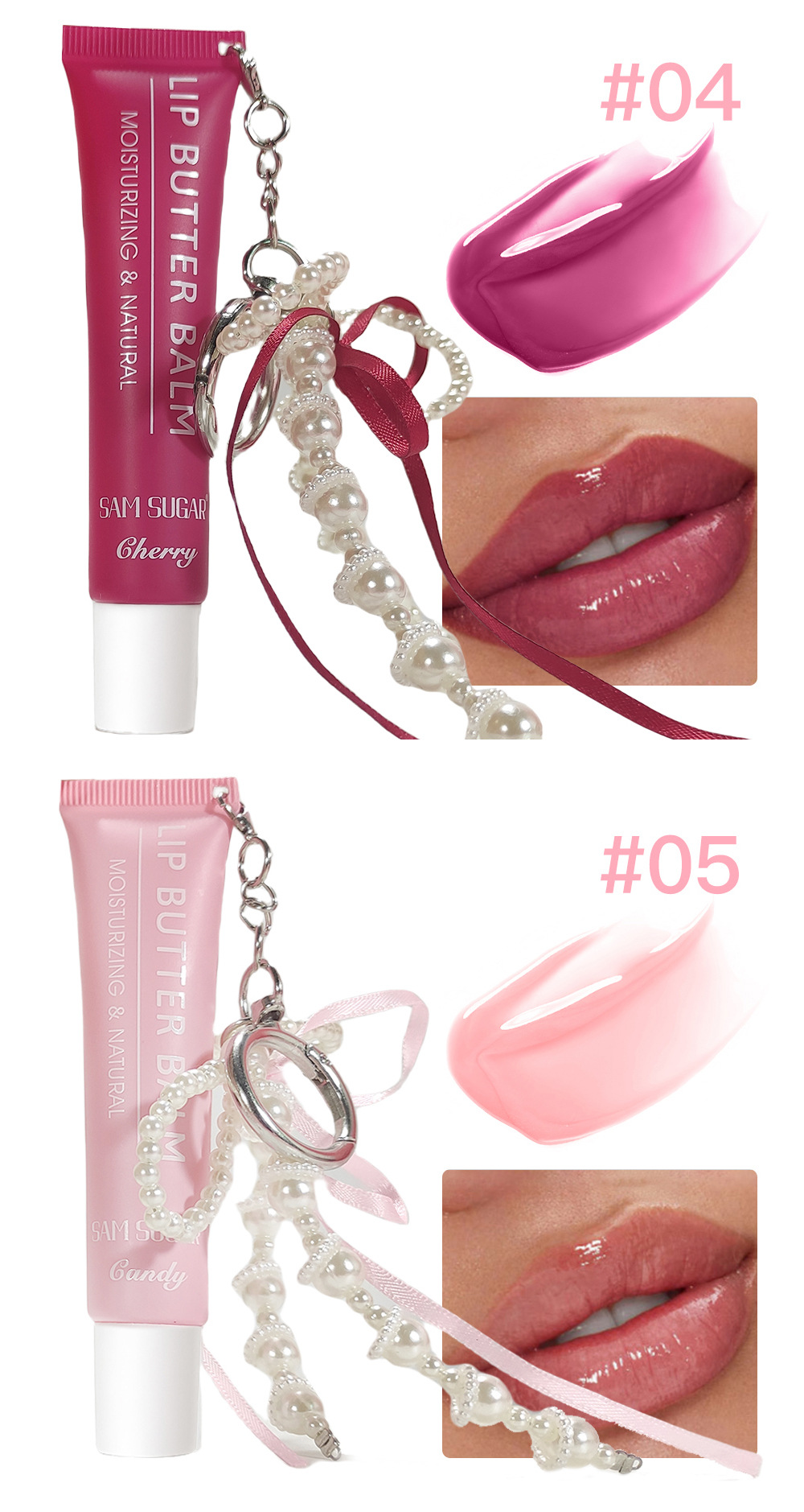 Бальзам для губ Sam Sugar Soft Tube увлажняющий, глянцевый, водный, с зеркальным эффектом, жидкая помада с цепочкой и блеском для губ