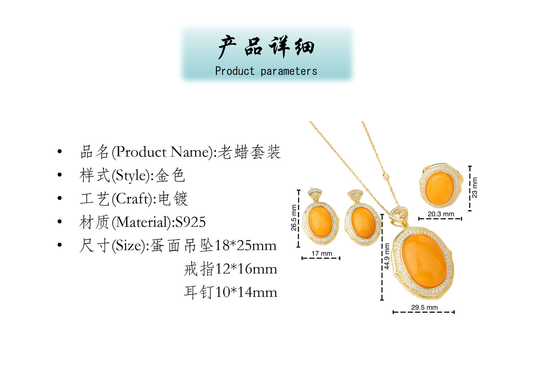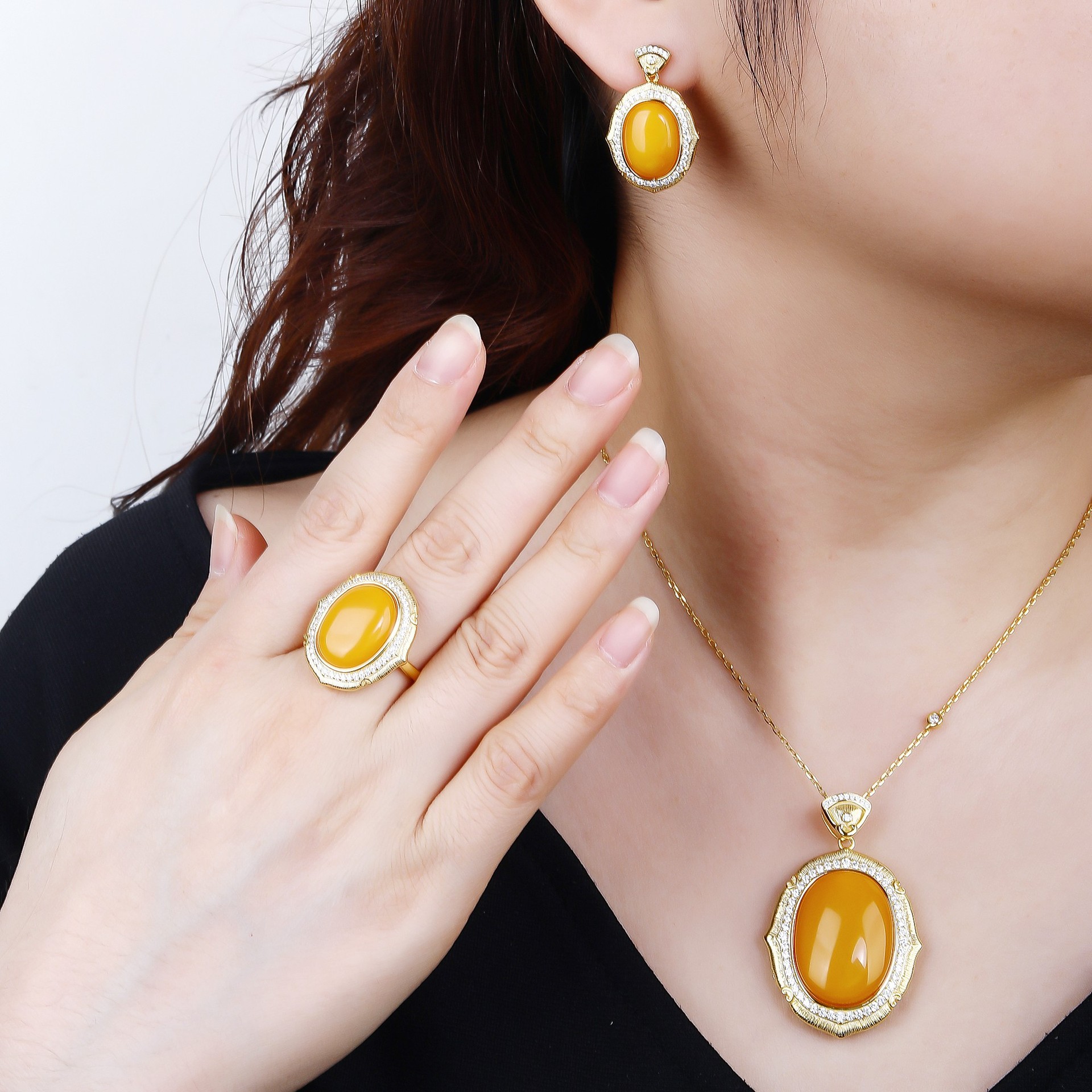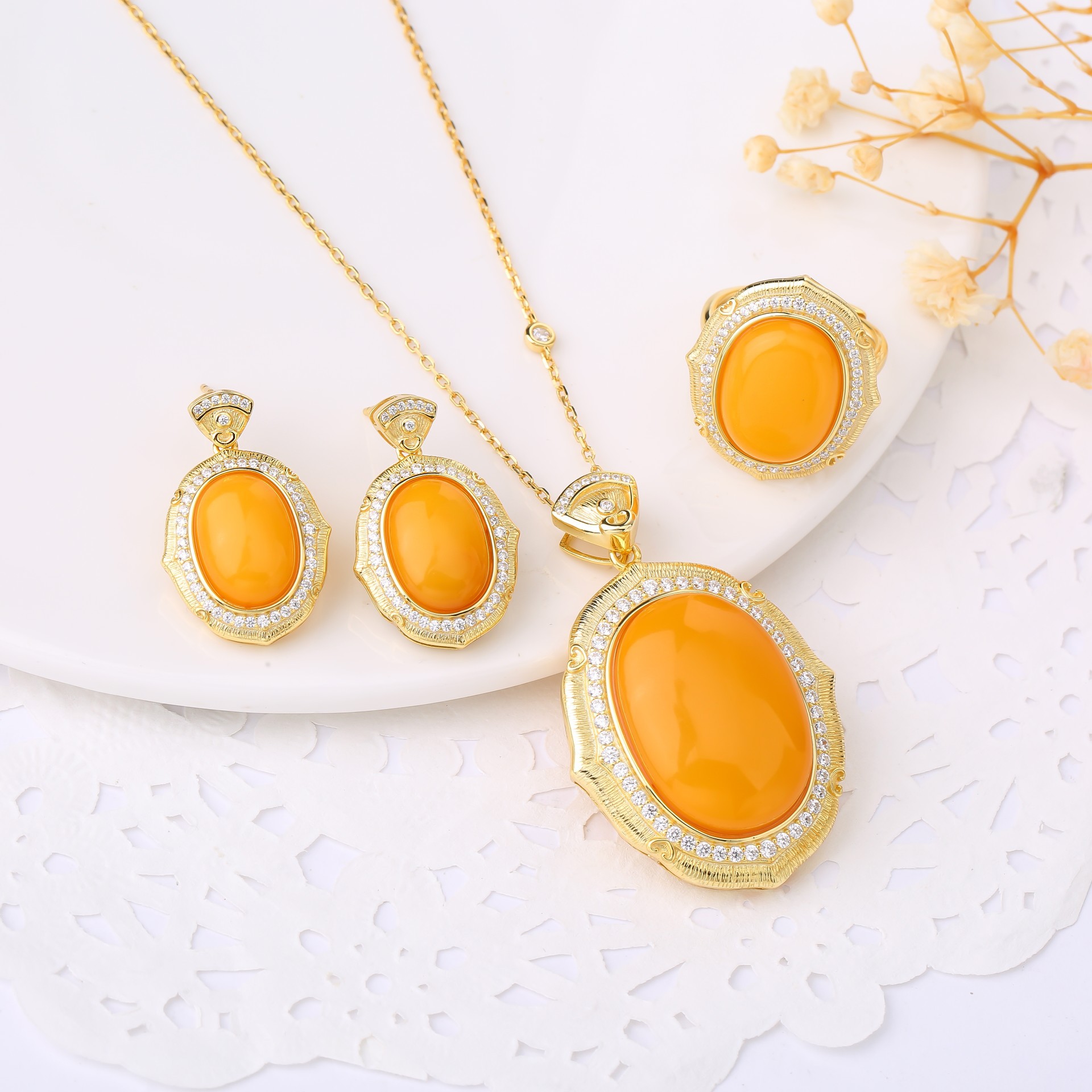S925 серебро натуральный русский янтарь простой и элегантный матовый комплект с подвеской серьгами кольцом