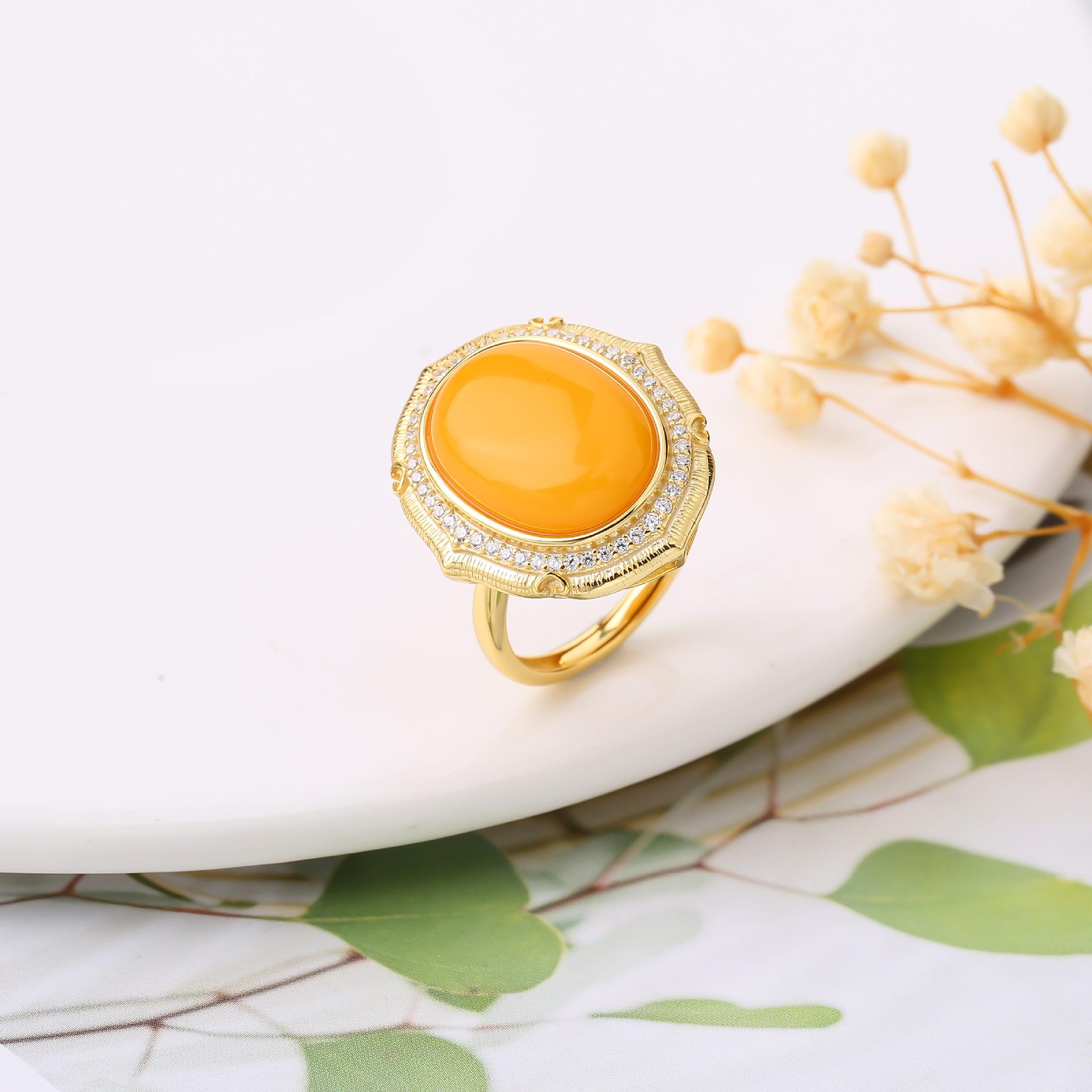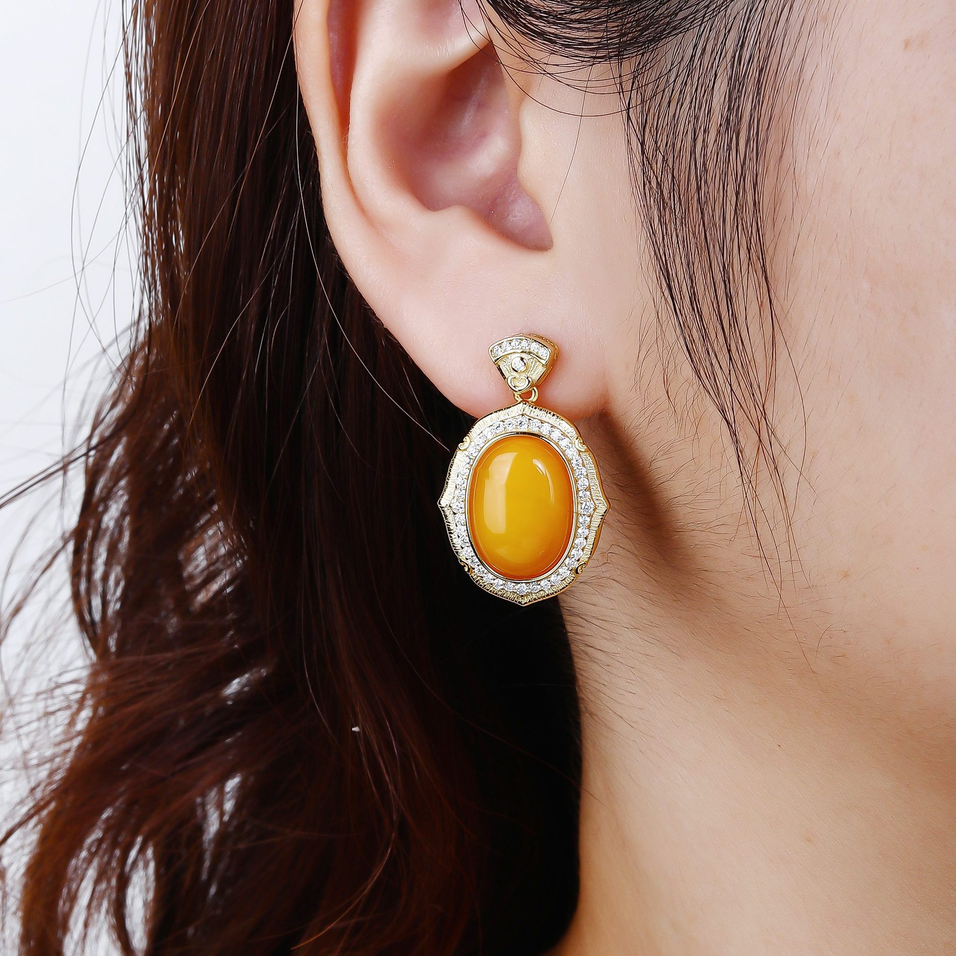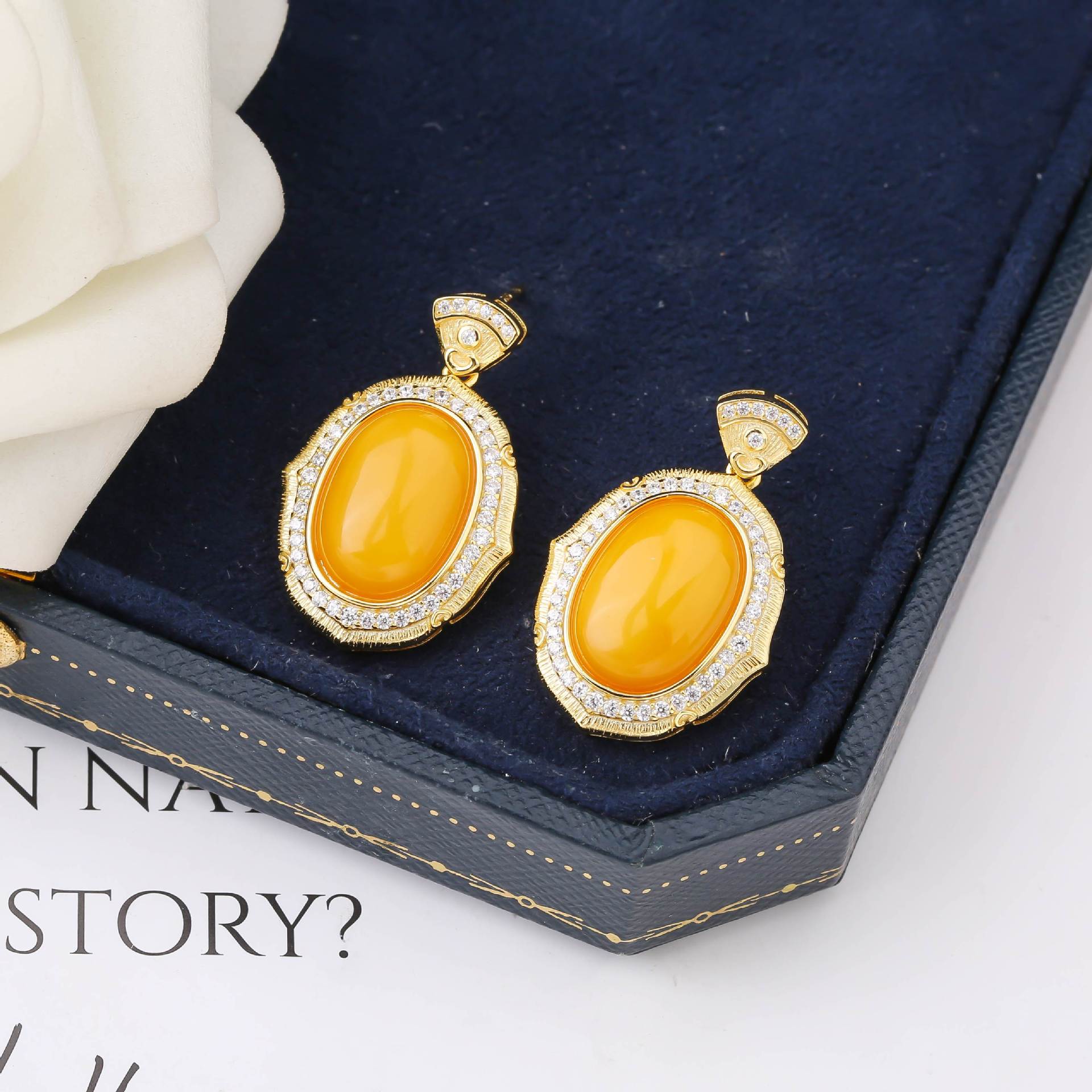 S925 серебро натуральный русский янтарь простой и элегантный матовый комплект с подвеской серьгами кольцом