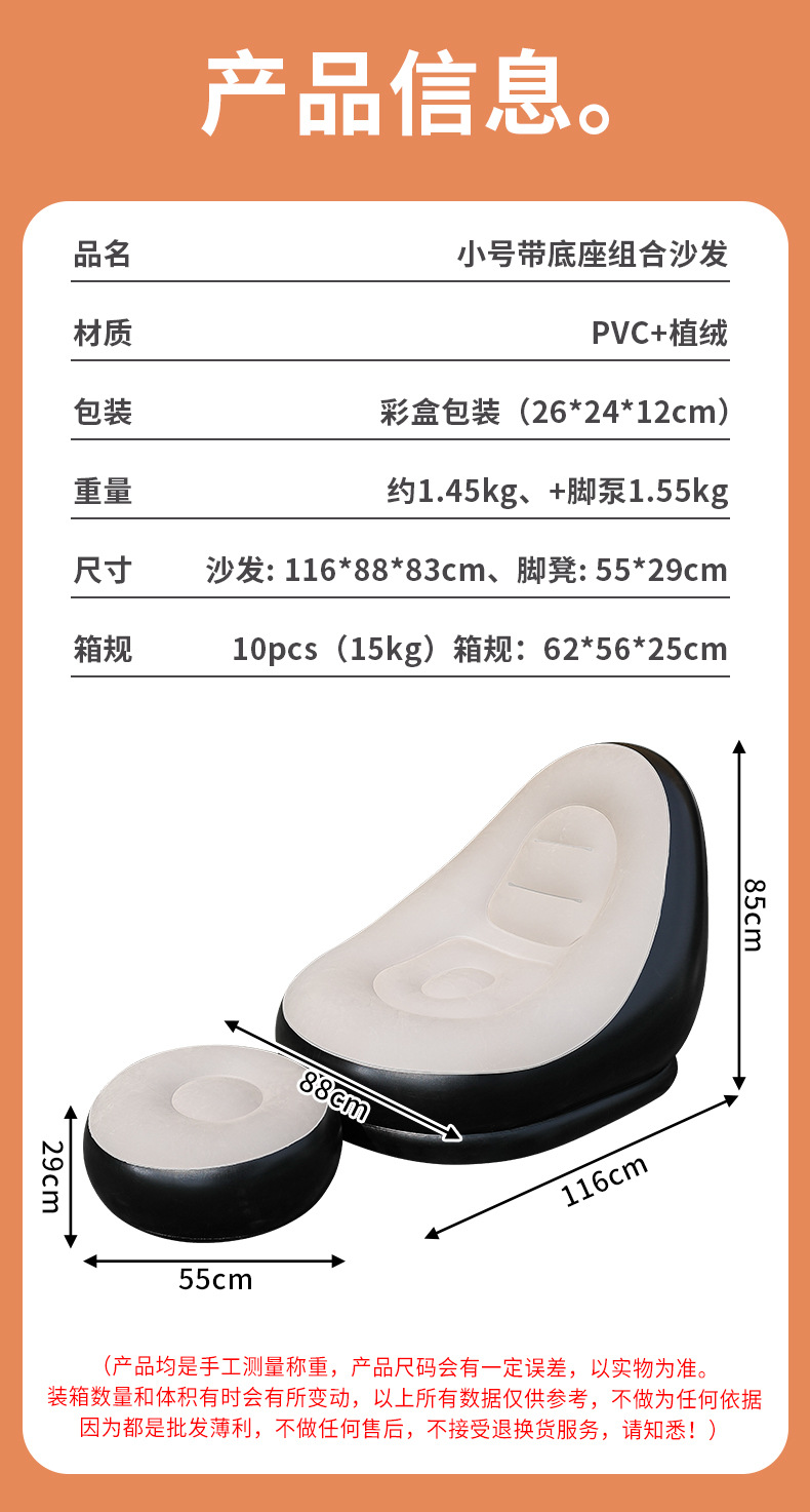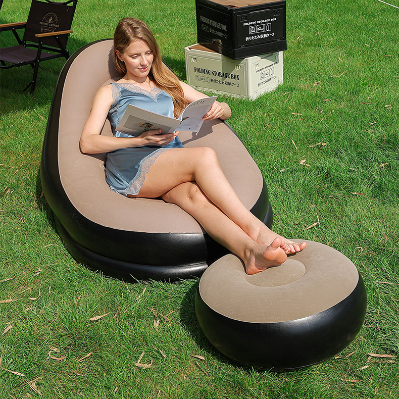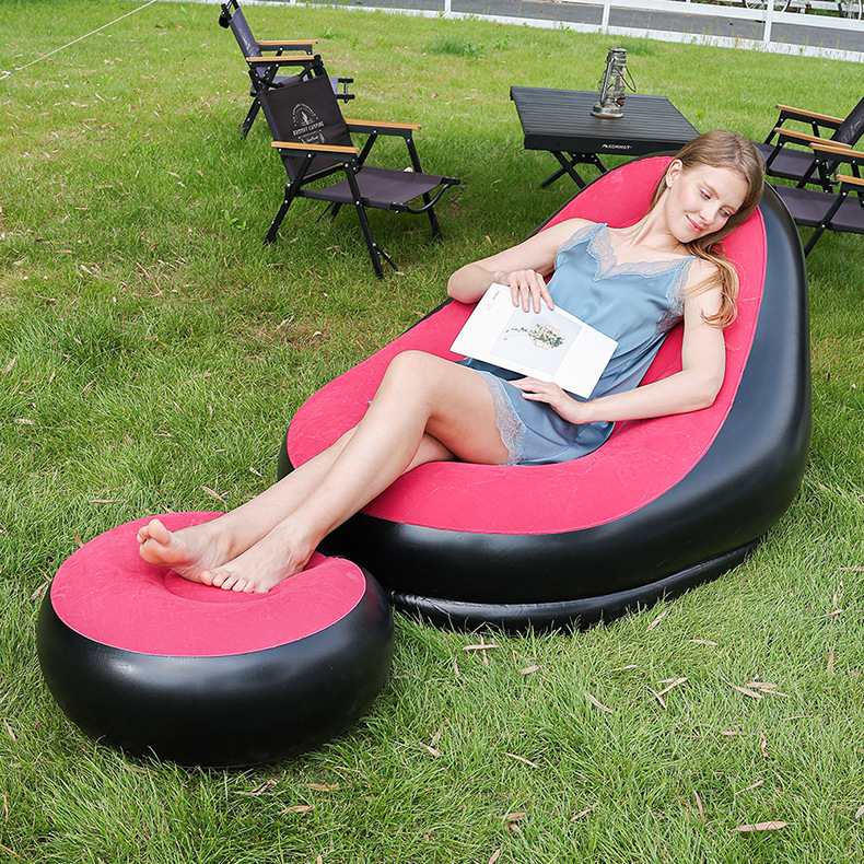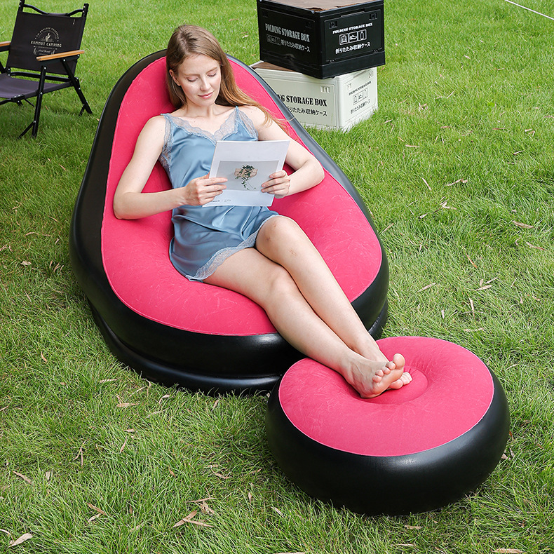 Прямые продажи фабрики, надувной диван с ворсистой подставкой для ног, ПВХ диван с ворсистой спинкой, надувное кресло с ворсистой спинкой