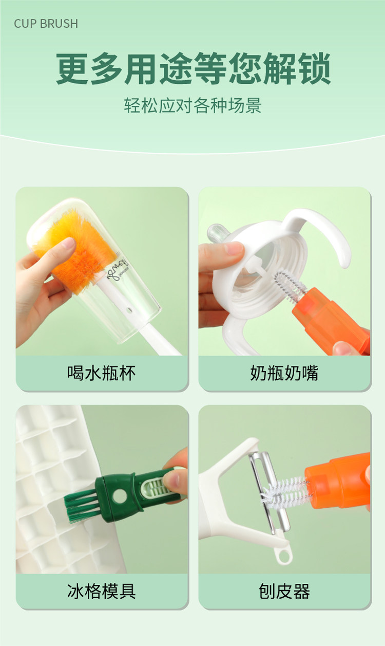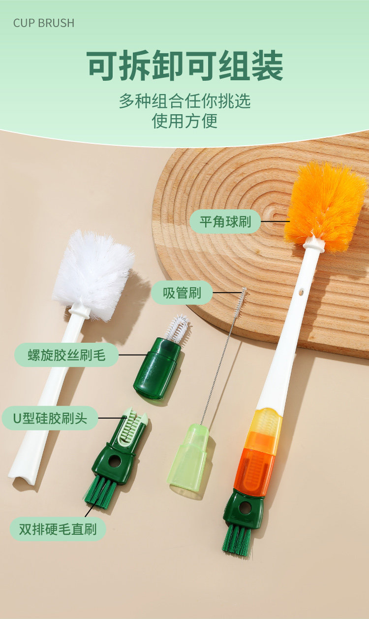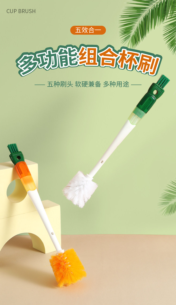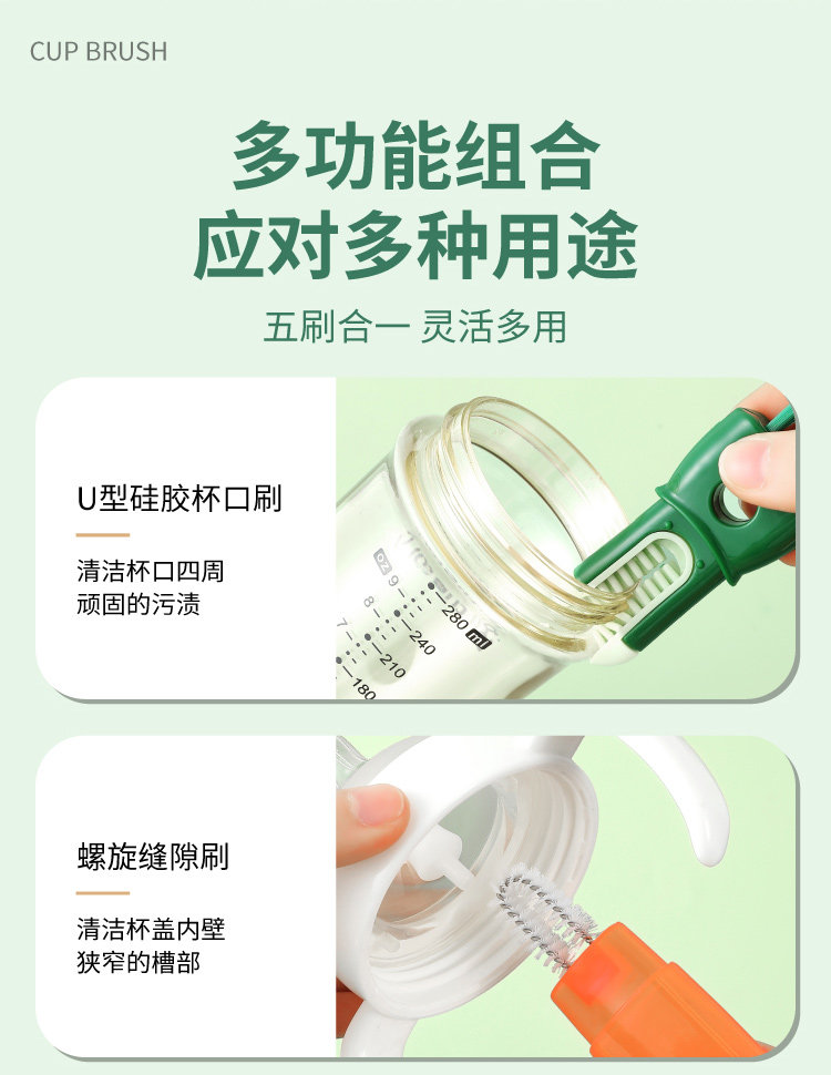 Пятив одном щетка для чистки чашек для оптовой торговли, многофункциональная щетка с длинной ручкой для термосов, бутылочек для детей, сосок, трубочек и крышек