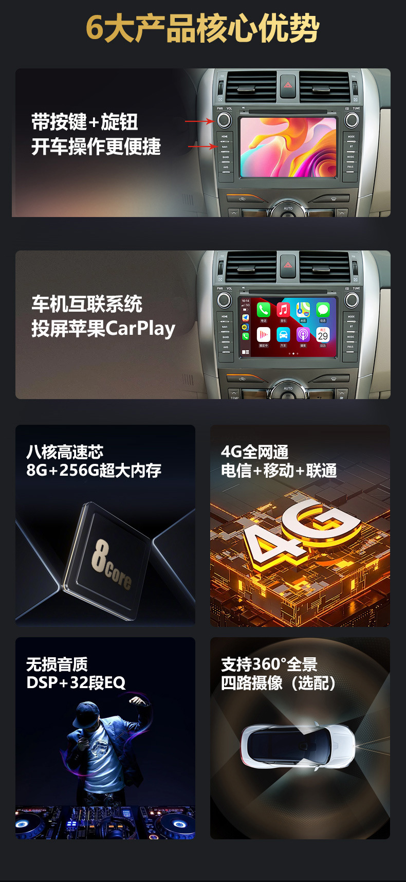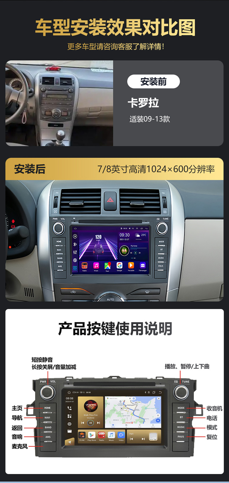 Кросс-бордерная адаптация 10 дюймов Двойная ручка с кнопкой Большой экран навигации Все-в-одном Carplay Универсальная машина