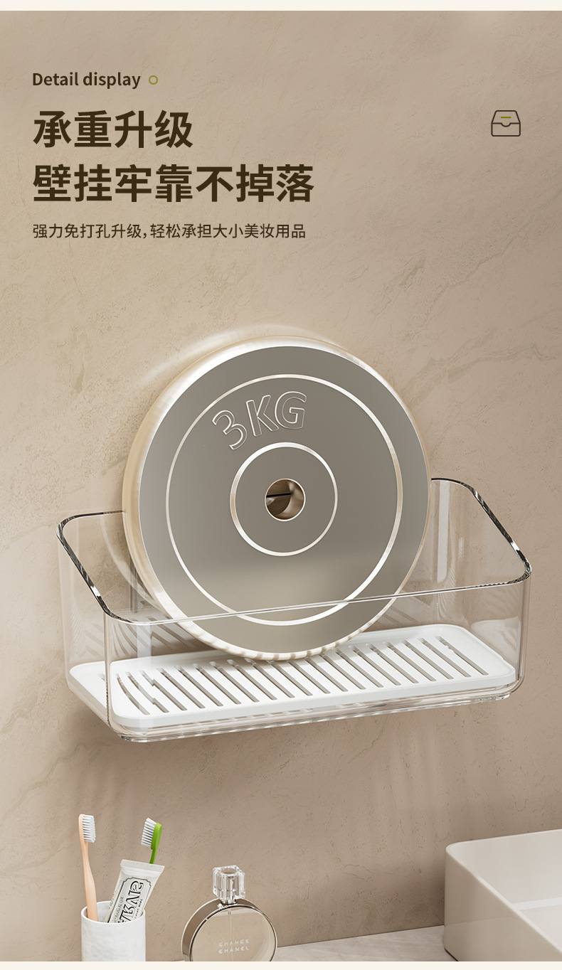 Настенная коробка для хранения без сверления, полка для ванной, туалетная мойка, косметическая коробка для хранения, прозрачная