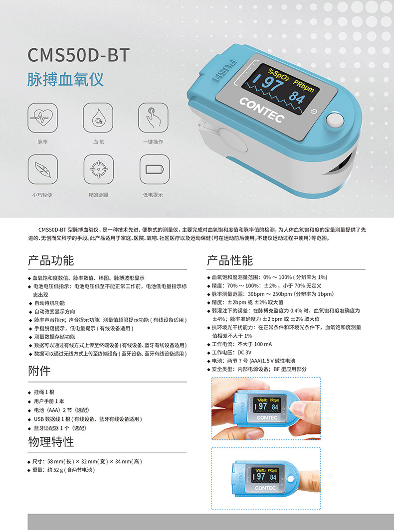 Пульсоксиметр Kangtai с зажимом на палец, домашний, с Bluetooth для измерения пульса и насыщения кислородом