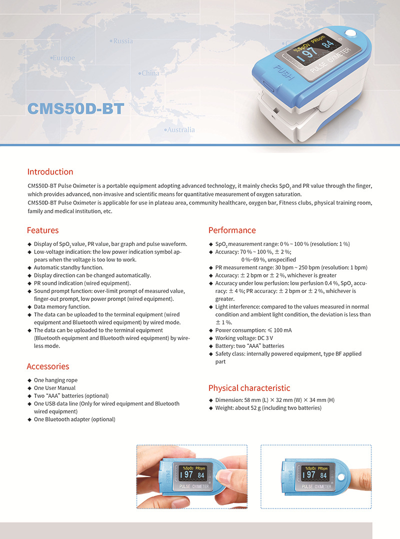 Диапазон измерений Blood oxygen saturation 0%~100% (resolution is 1%)