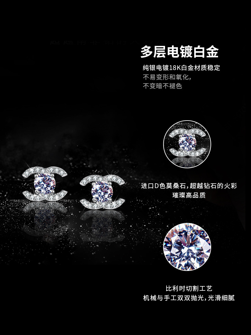 Серьги из серебра S925 с электропокрытием 18K белым золотом, двойные серьги C с моиссанитом для женщин, маленькие, ароматные, высококачественные