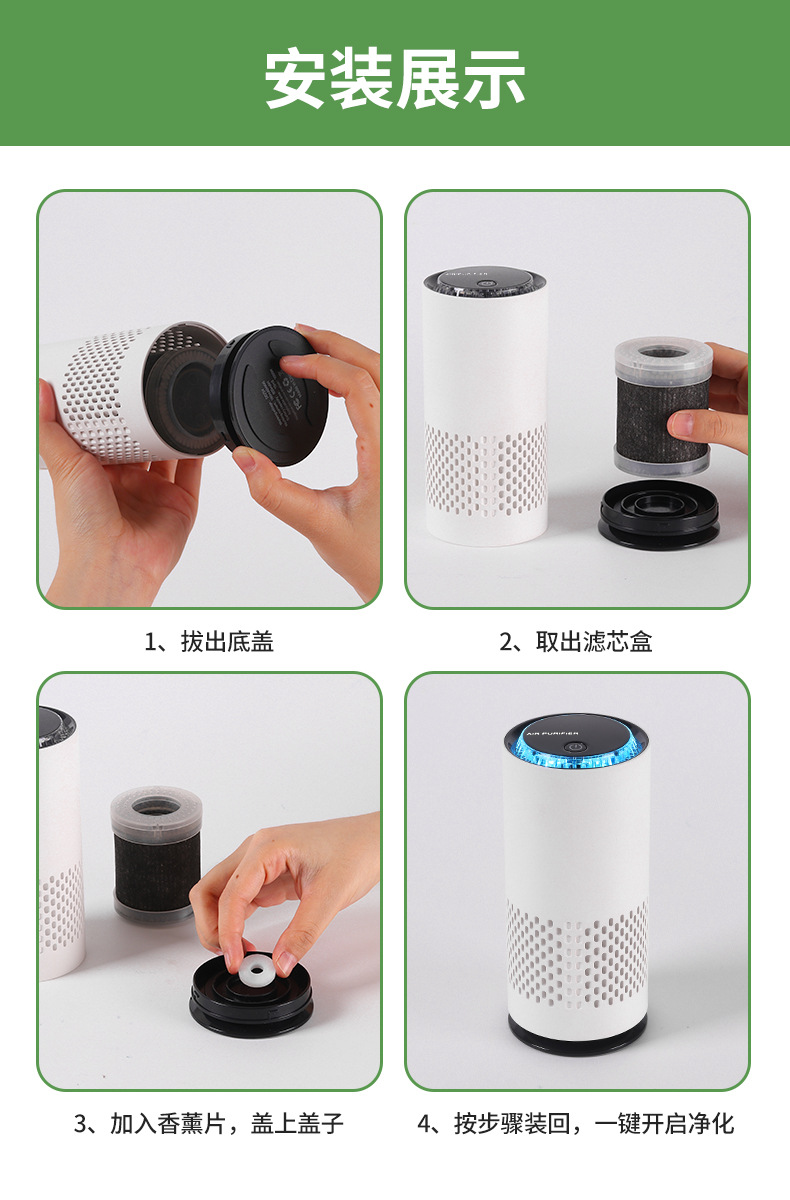 Автомобильный воздухоочиститель для удаления запахов, формальдегида, с держателем для стаканов, с отрицательными ионами, компактный, в подарок