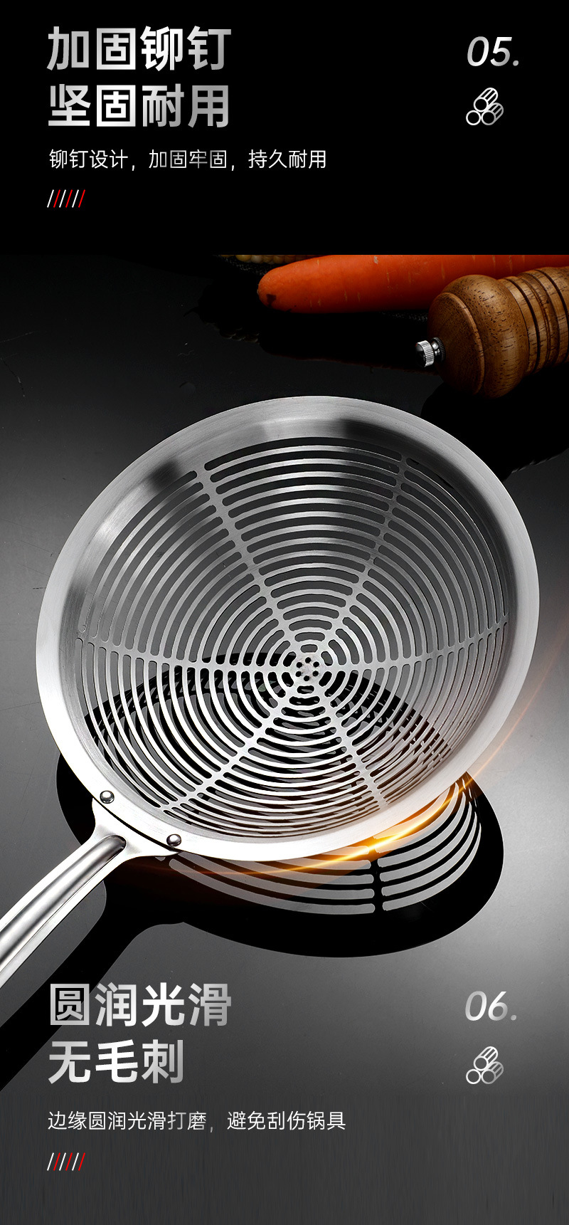 产品名称:201不锈钢大圆漏勺