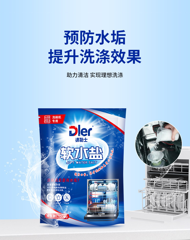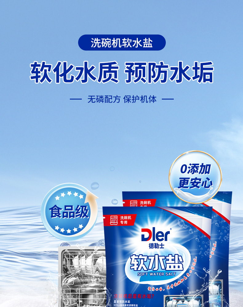 Специальная соль для посудомоек Dler, предотвращает накипь, осветляет посуду, соль для смягчения воды