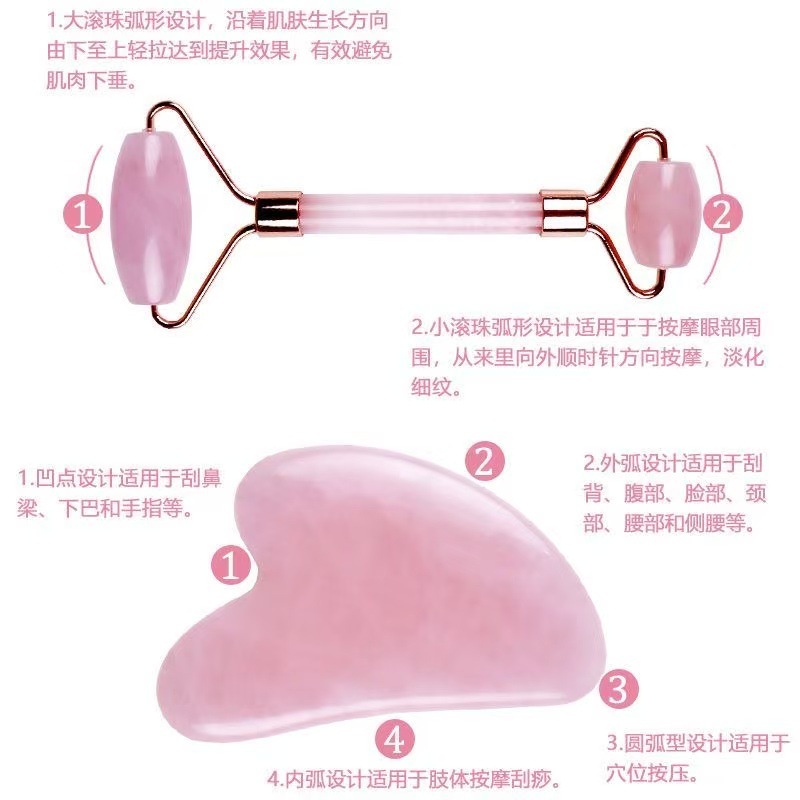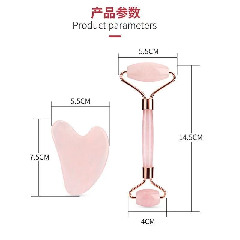 Набор роликов для массажа из розового кварца, не нефритовый, двуголовый массажный стик, доска для красоты лица, двуголовый ручной стик