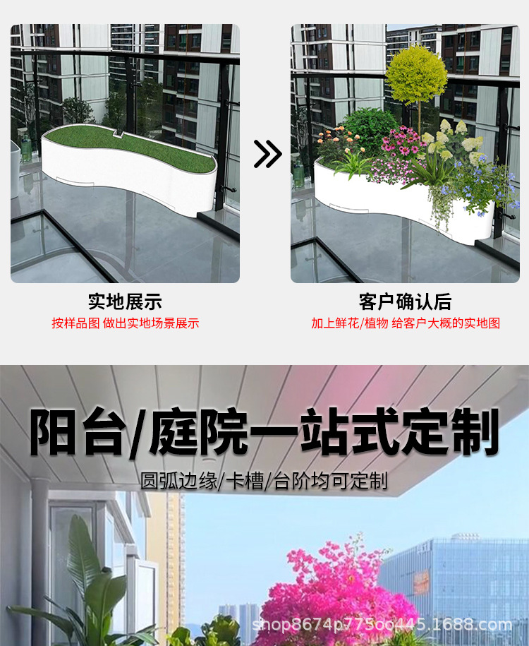 Балконный ящик для цветов из нержавеющей стали, индивидуальный цветочный горшок, мобильная комбинация для деревьев