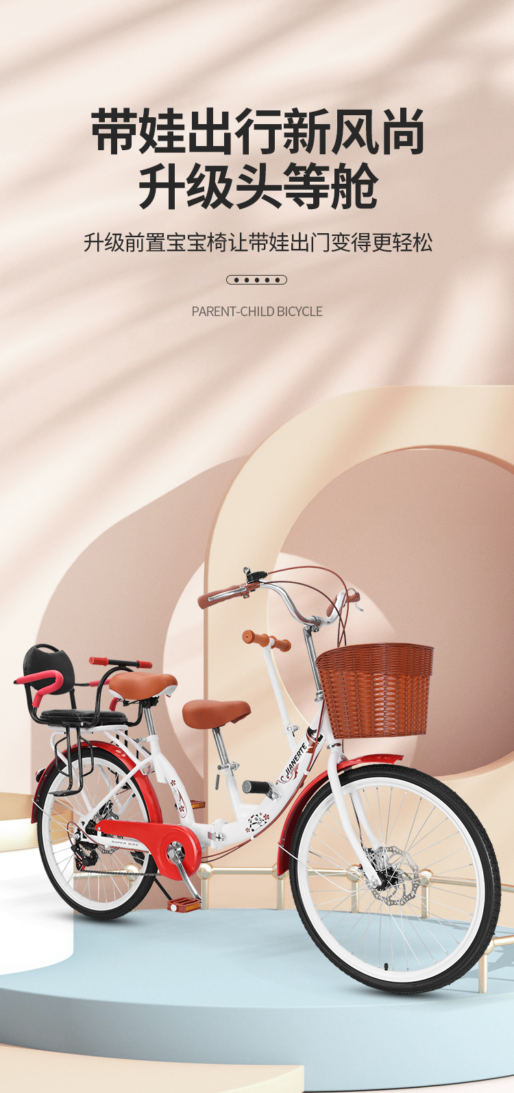 Велосипед для родителей и детей с сиденьем для ребенка, складной велосипед с дисковыми тормозами для мамы и ребенка, для забирания и высаживания детей