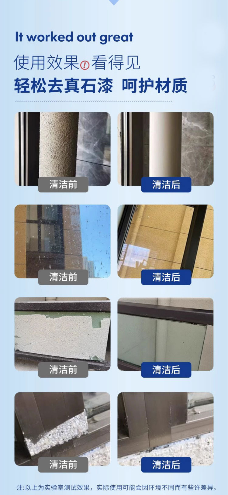 Очиститель краски Real Stone эффективно удаляет краску, моет стены, перила, стеклянные двери и окна, очищает латексной диатомовой грязью
