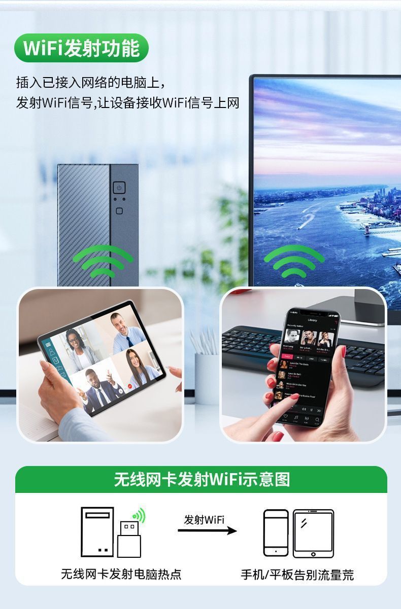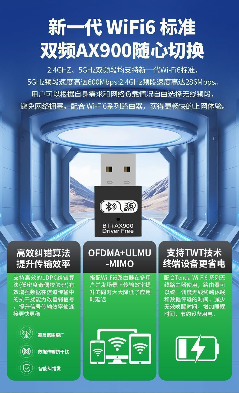 Wifi6 полностью бездрайверная 5g беспроводная сетевая карта + Bluetooth 5.4 для ноутбука настольного компьютера WiFi приемник передатчик