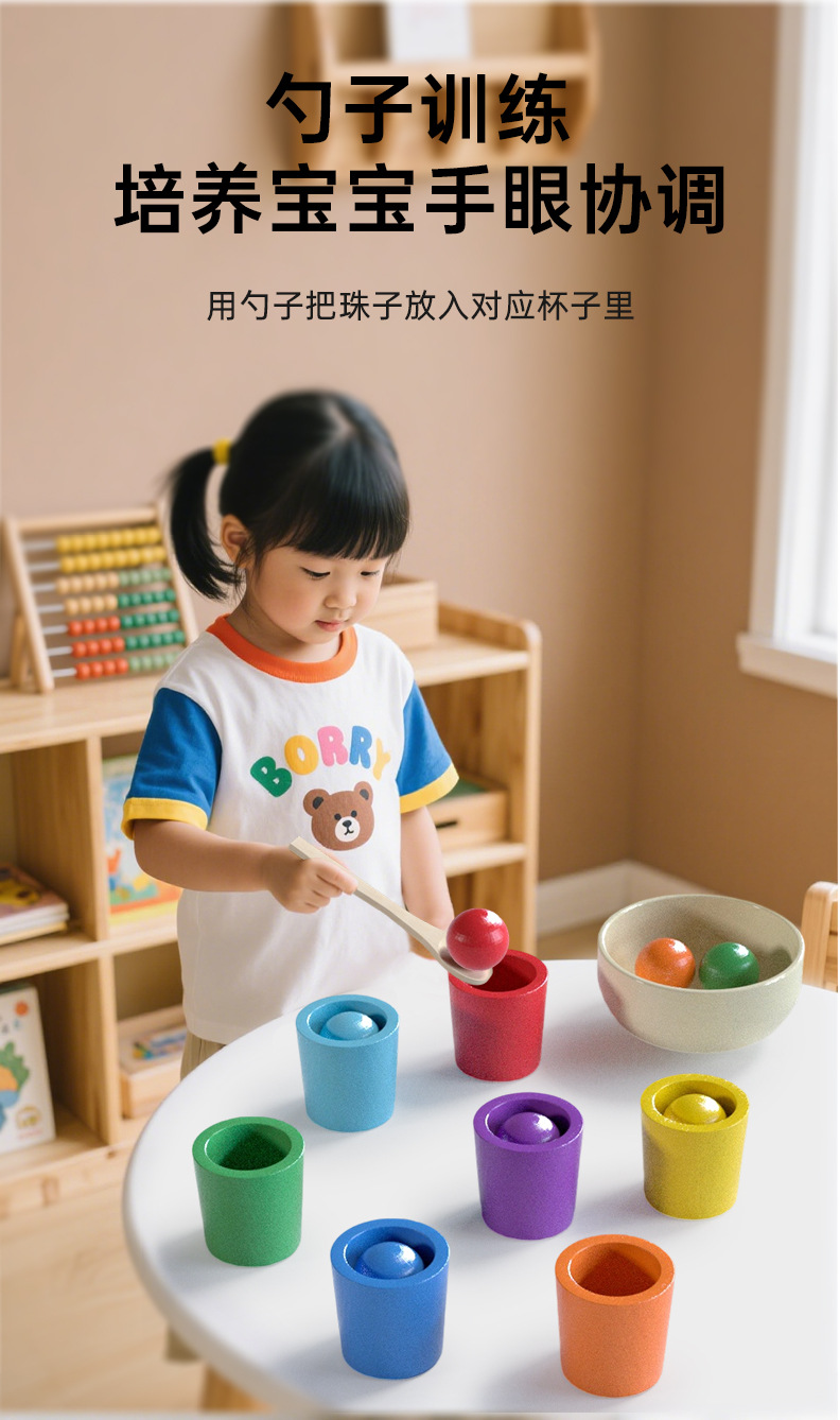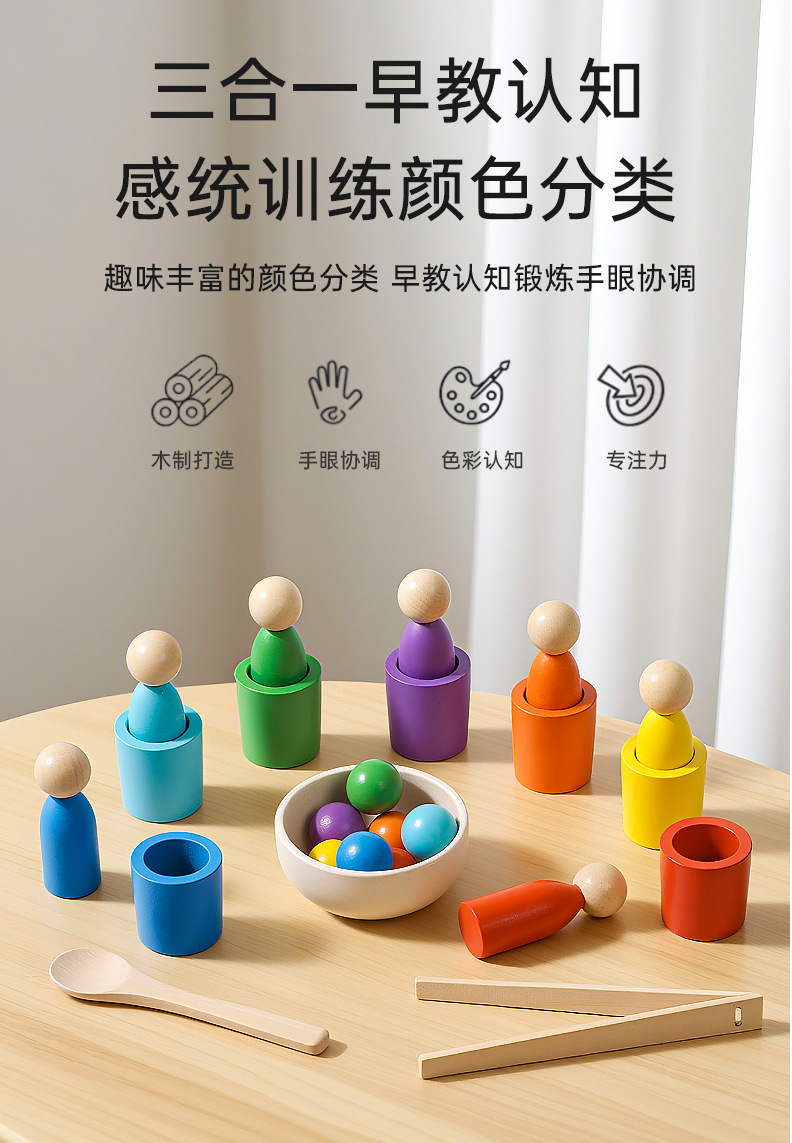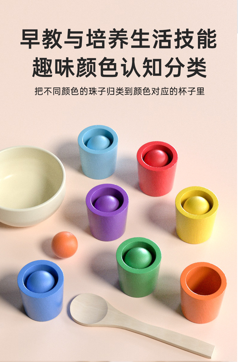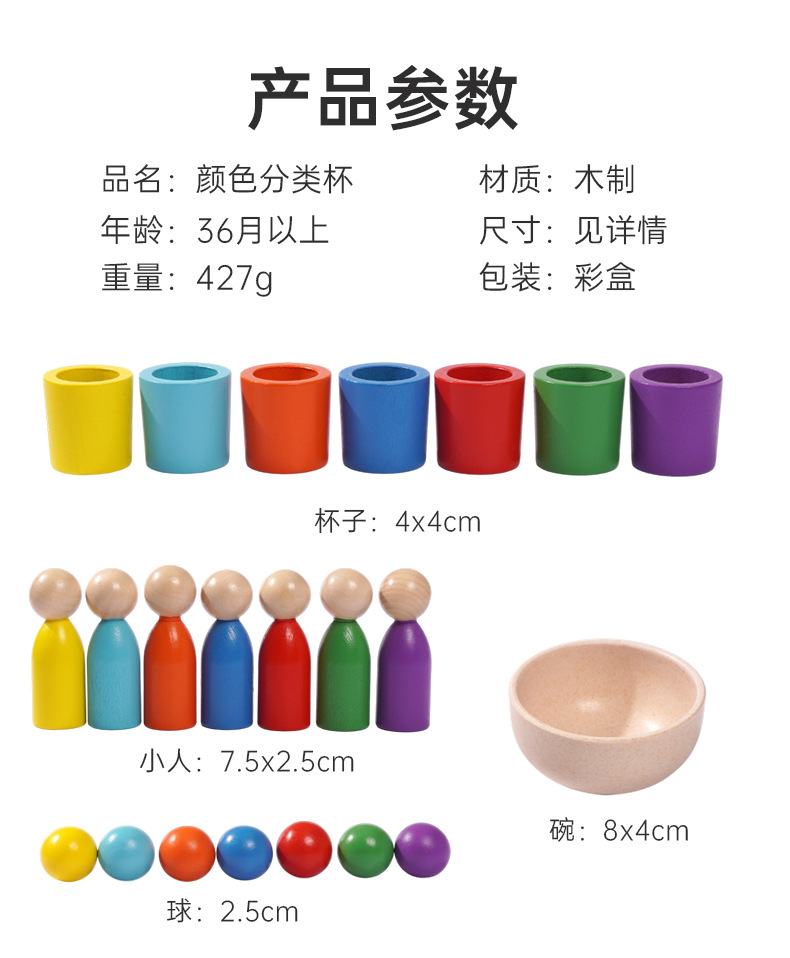 Кросс-бордерное Монтессори раннего обучения Семь цветов Цветовое соответствие Классификационная чашка Развивающие игрушки для детей Концентрация