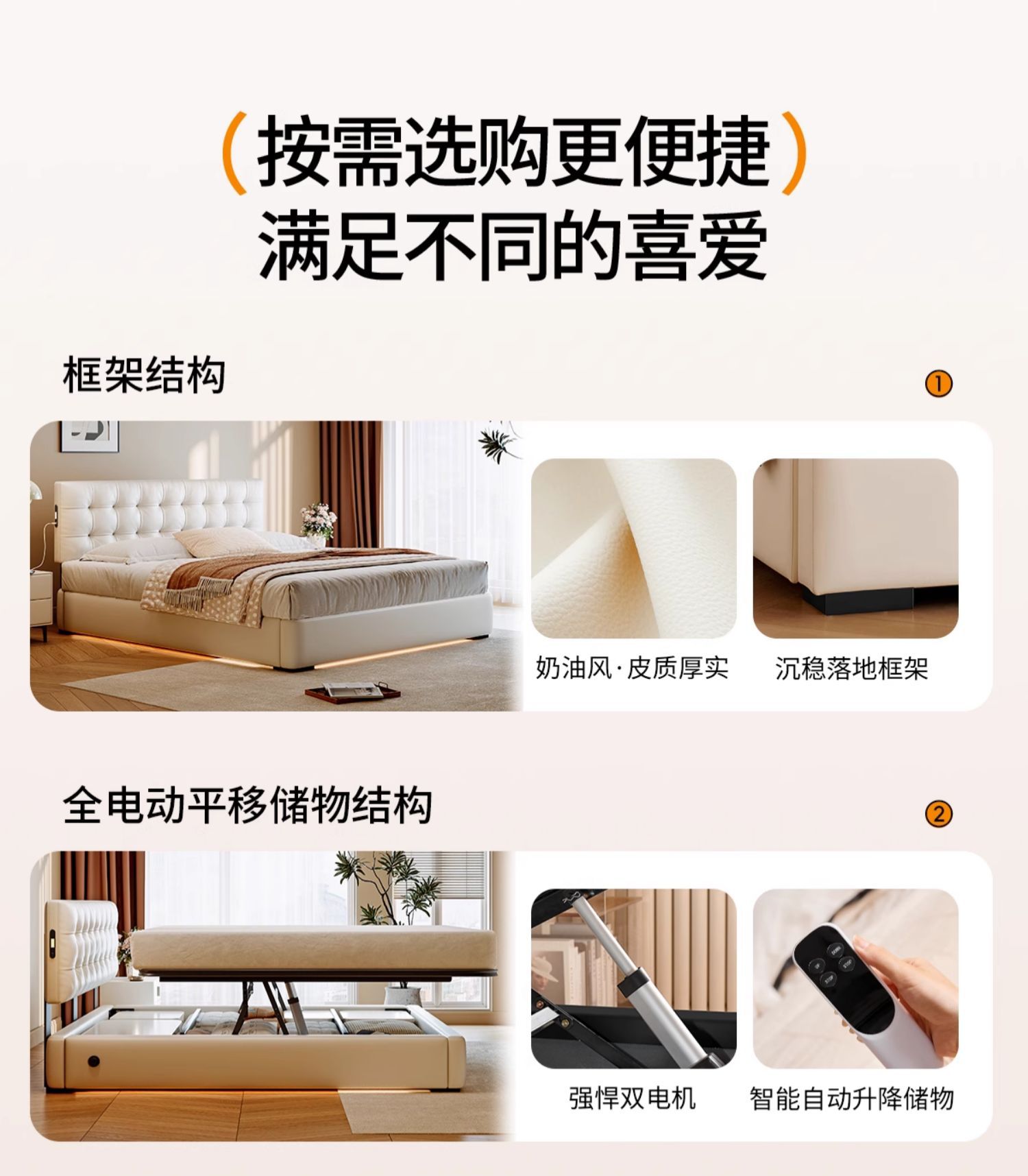 ![]() | Nappa first-layer cowhide+bedside table*1/all solid wood beech frame | 1800*2000mm electric translation storage structure | ¥5945.0 / ≈ 71 706 ₽ | 199 | 6059688958493 | |