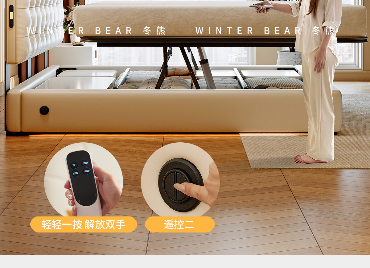 ![]() | Nappa first-layer cowhide+bedside table*1/all solid wood beech frame | 1500*2000mm electric translation storage structure | ¥5838.0 / ≈ 70 415 ₽ | 199 | 6059688958489 | |