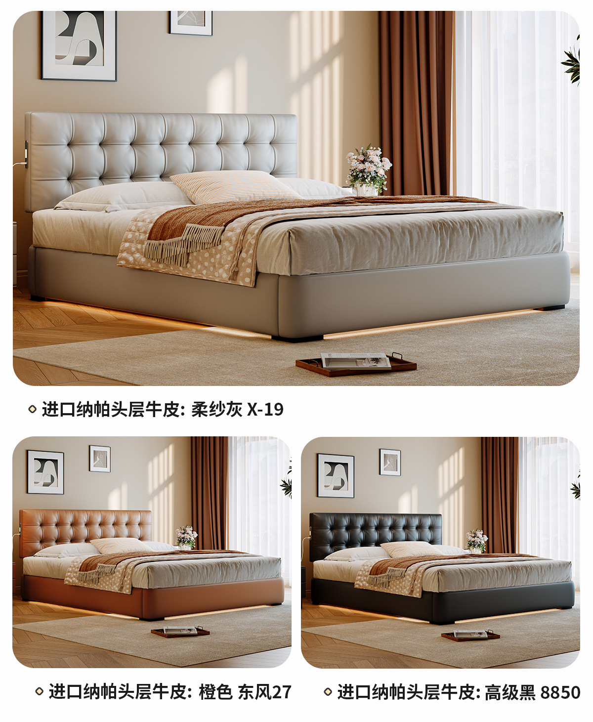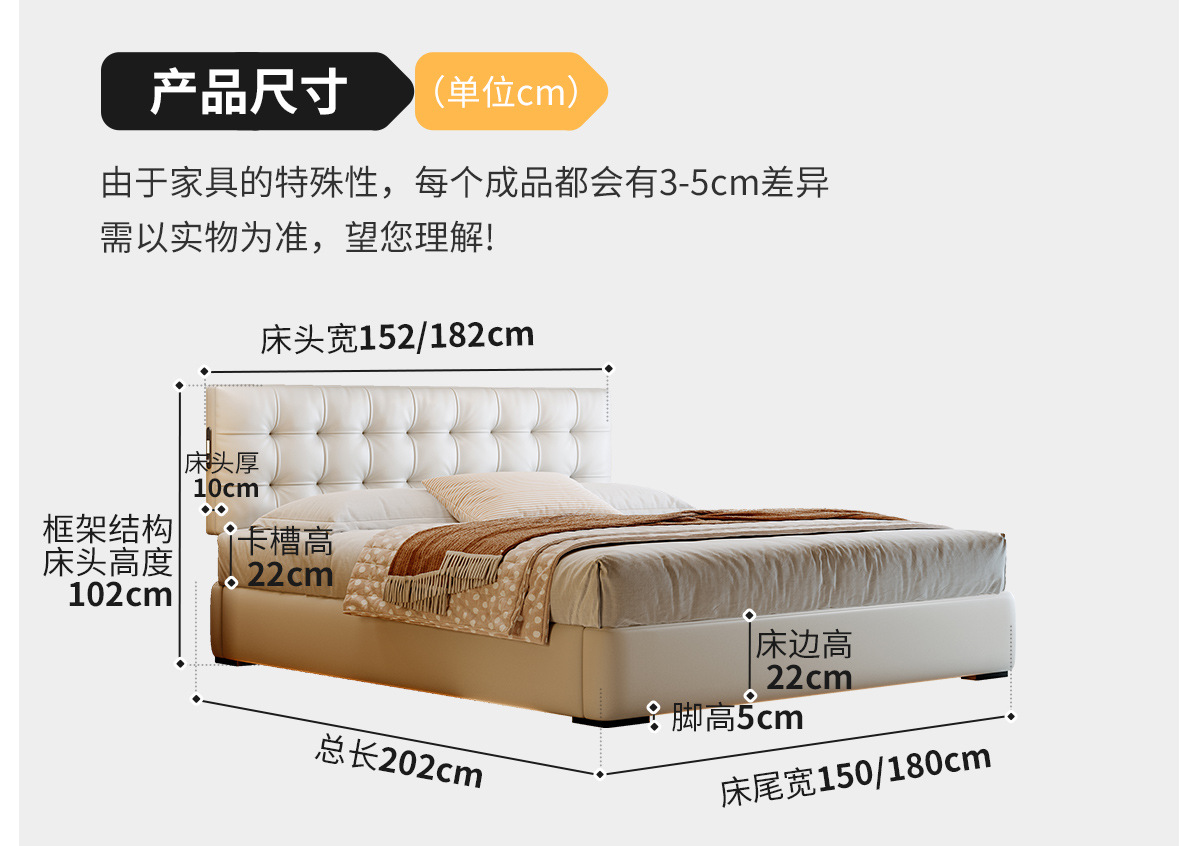![]() | Nappa first-layer cowhide+bedside table*1/all solid wood beech frame | 1500*2000mm frame structure | ¥3582.0 / ≈ 43 204 ₽ | 199 | 6059688958486 | |
