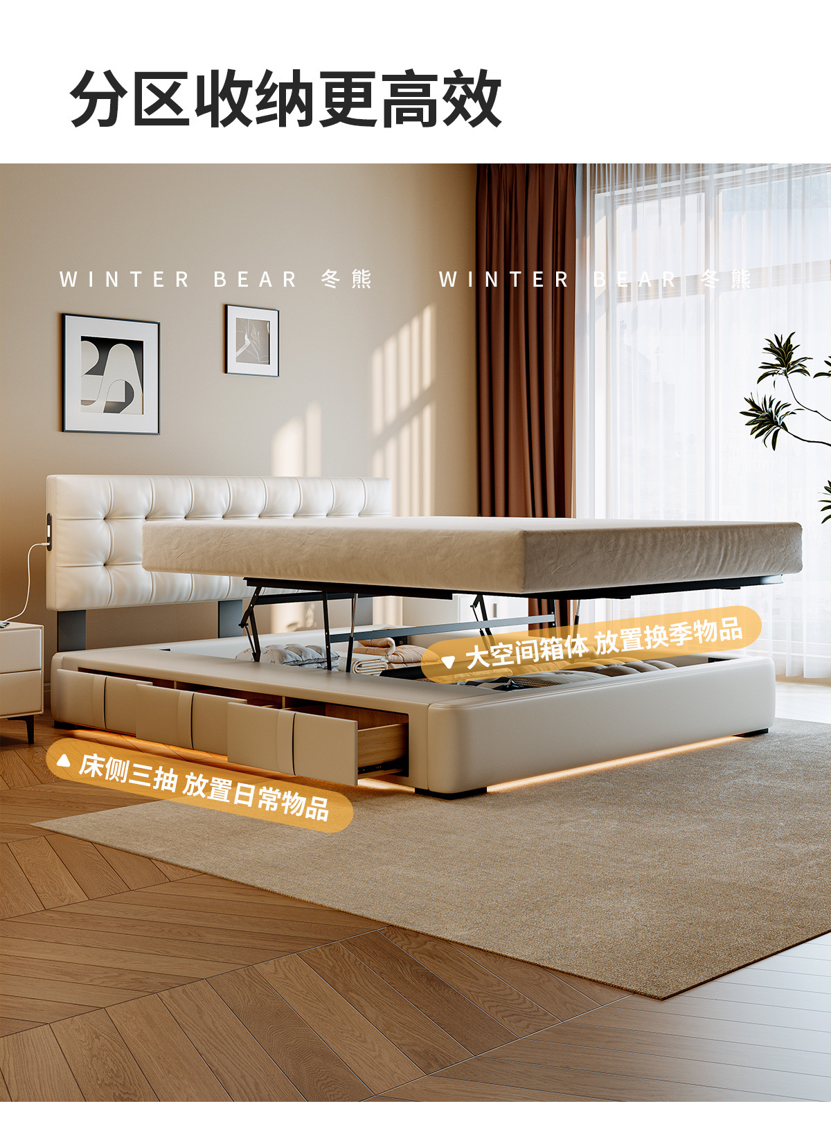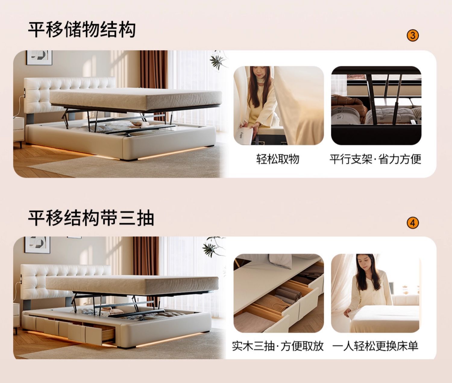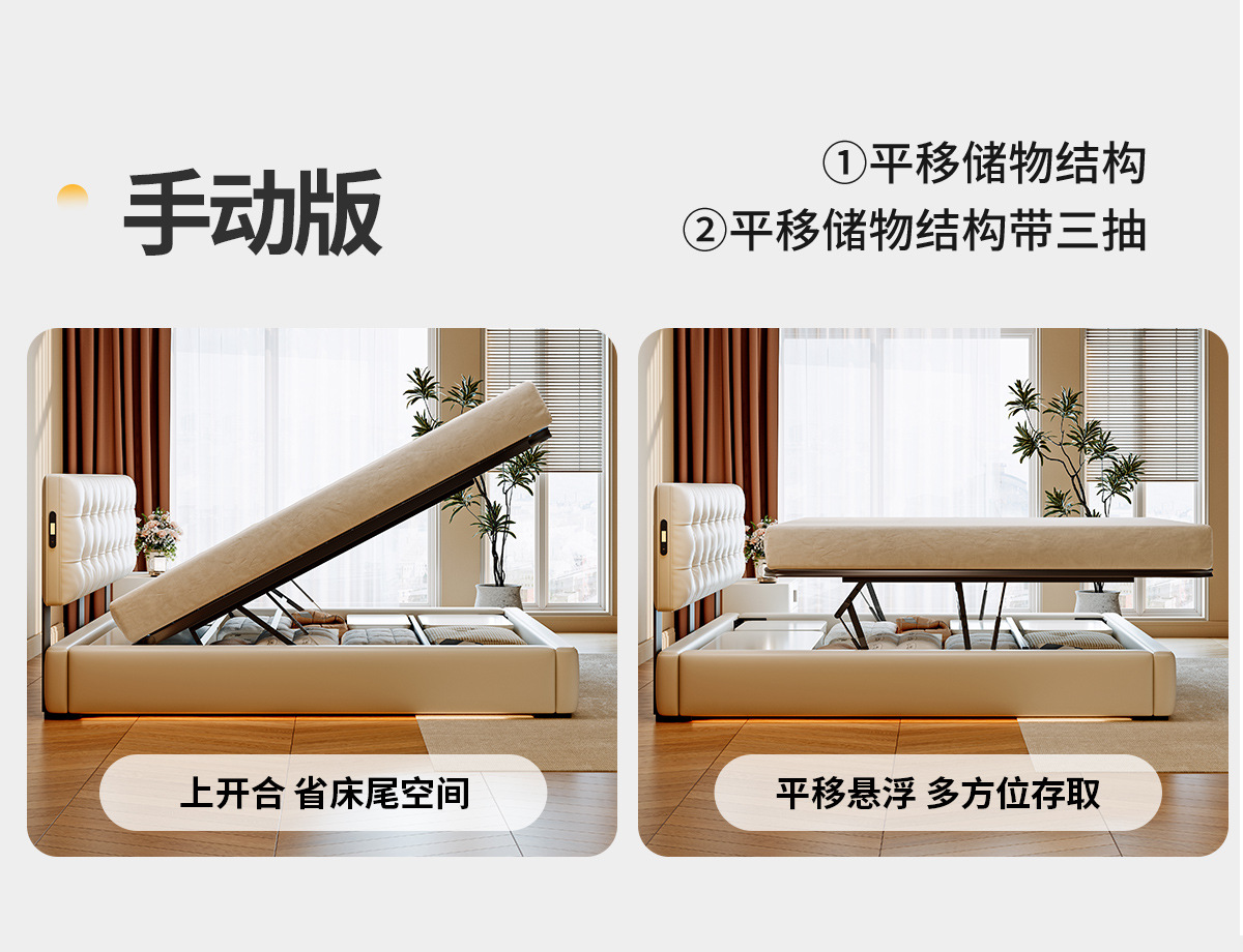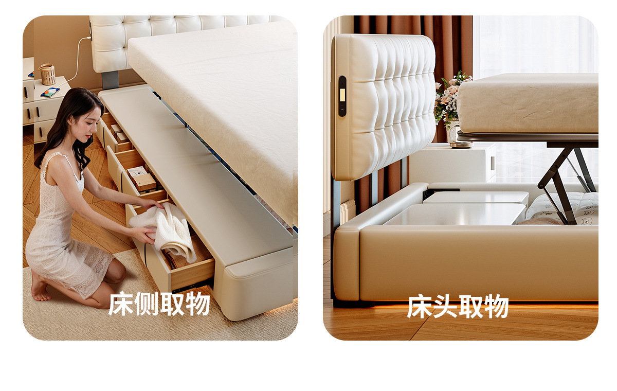 ![]() | Smart version/nappa first-layer cowhide/encrypted upgraded silent frame [multi-function usb+suspended sensor light] | 1500*2000mm translation storage + three-drawer structure | ¥4434.0 / ≈ 53 481 ₽ | 199 | 6099603635808 | |