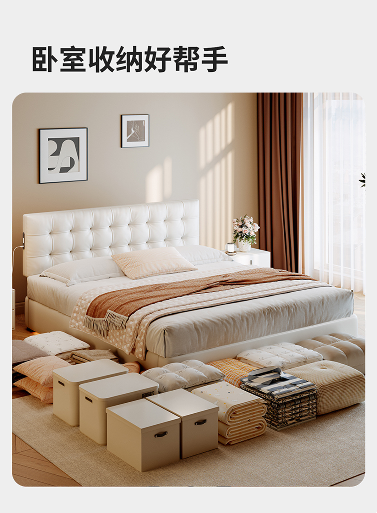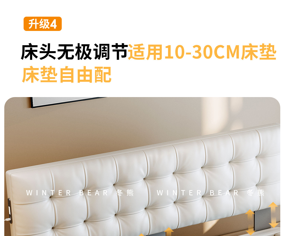 Кровать Tongyu Tehua с регулируемым ультратонким матрасом, многофункциональная кровать из кожи в кремовом стиле для главной спальни, двуспальная кровать с коробкой для хранения