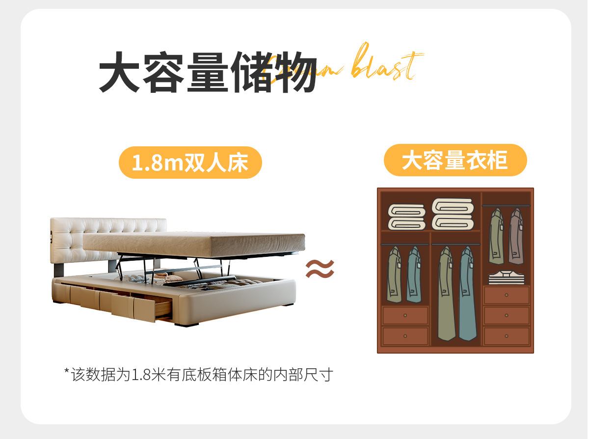 ![]() | Smart version/nappa first-layer cowhide/encrypted upgraded silent frame [multi-function usb+suspended sensor light] | 1800*2000mm translation storage + three-drawer structure | ¥4541.0 / ≈ 54 771 ₽ | 199 | 6099603635817 | |