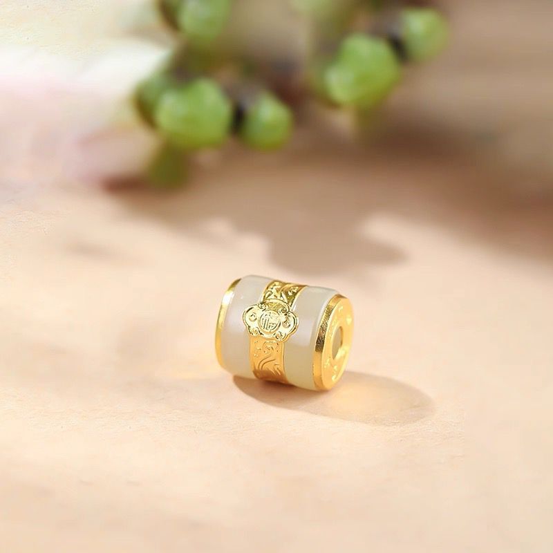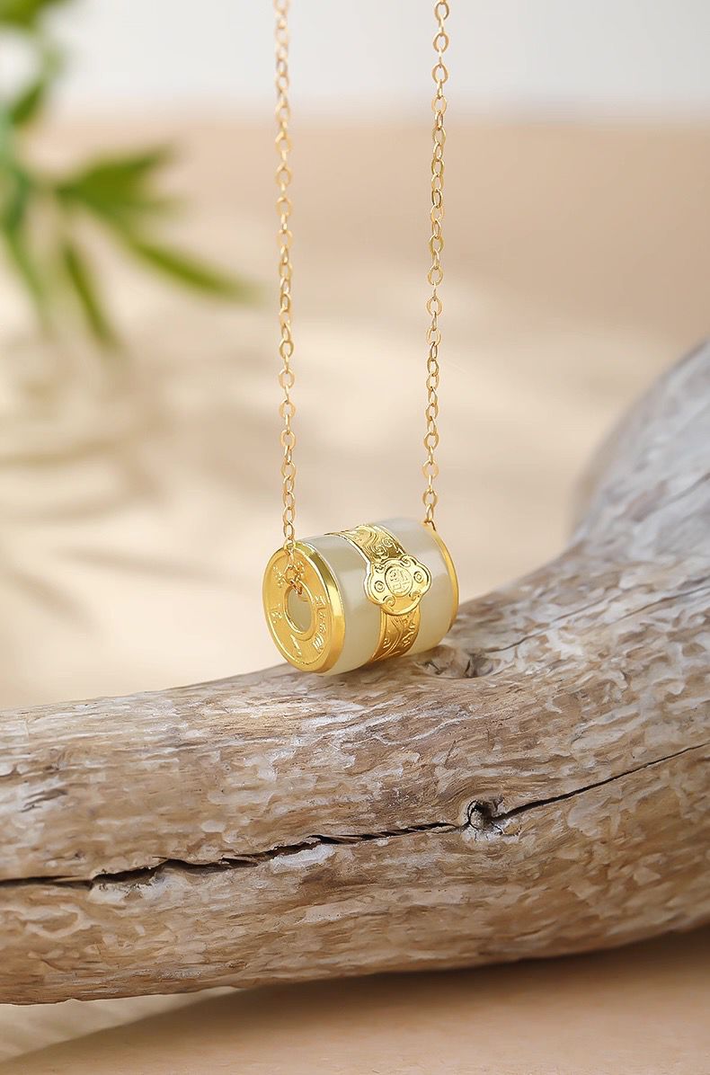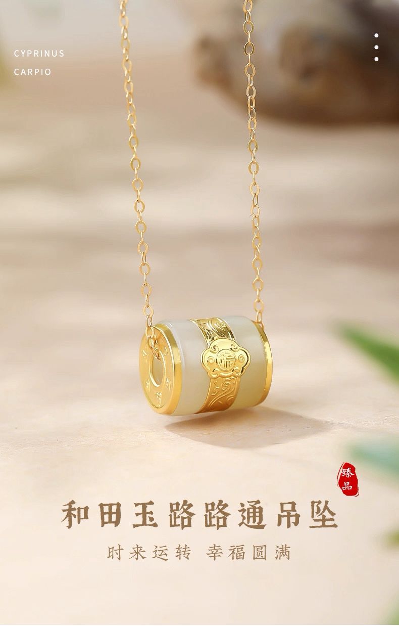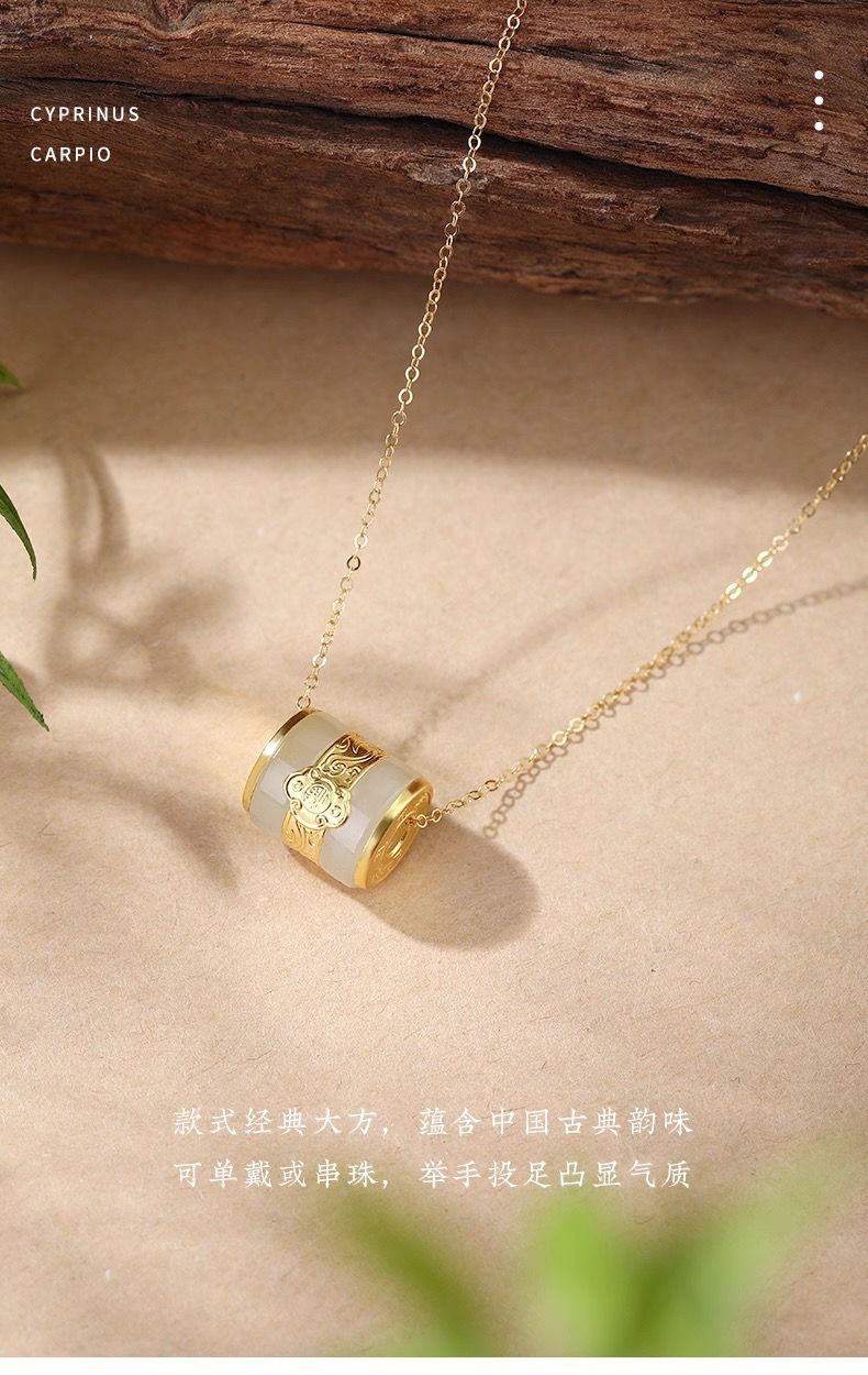 Золотая вставка в нефрит, кулон с чистым золотом, ожерелье с бусинами, продукт для прямых трансляций