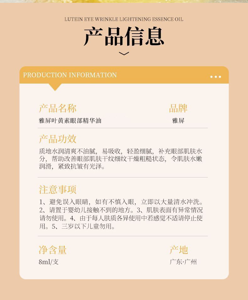 Специальное название косметического продукта Yaping lutein eye essence oil