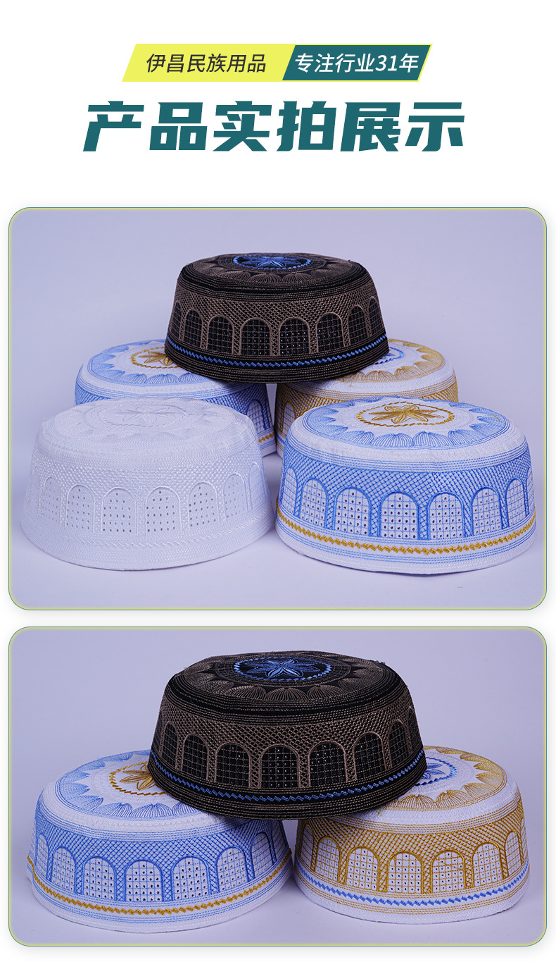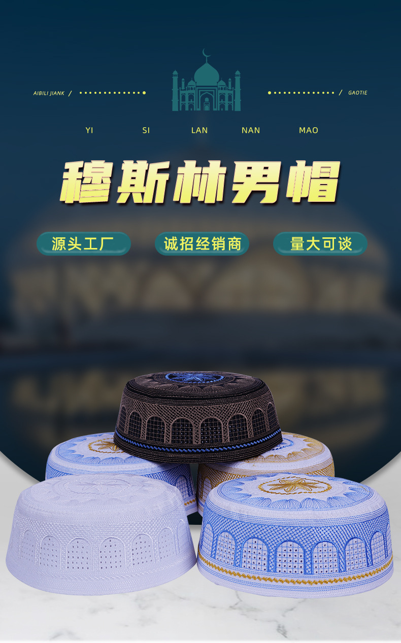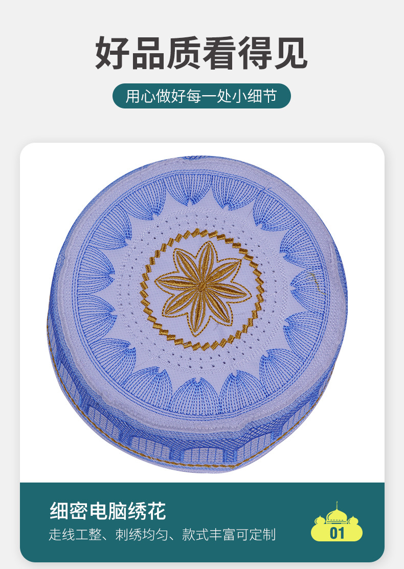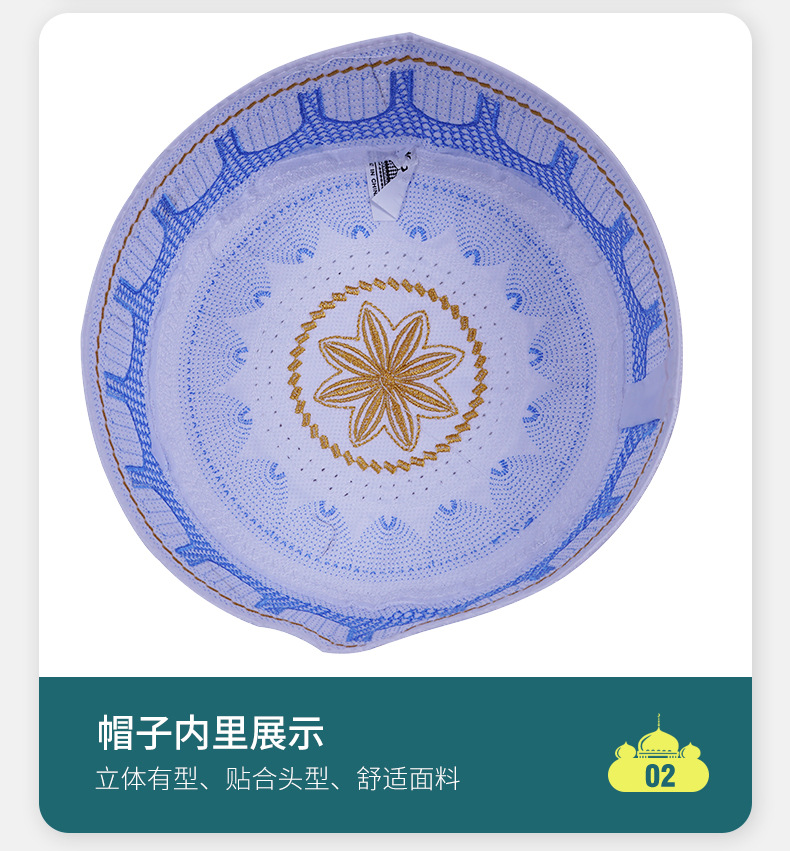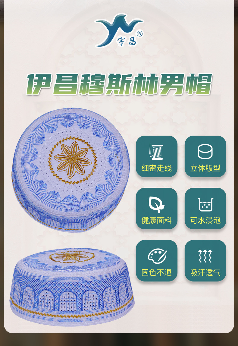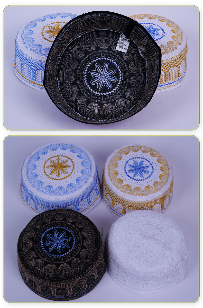 Мужская новая стильная шляпа с плоским верхом и круглым полем с синим цветочным саудовским вышивкой