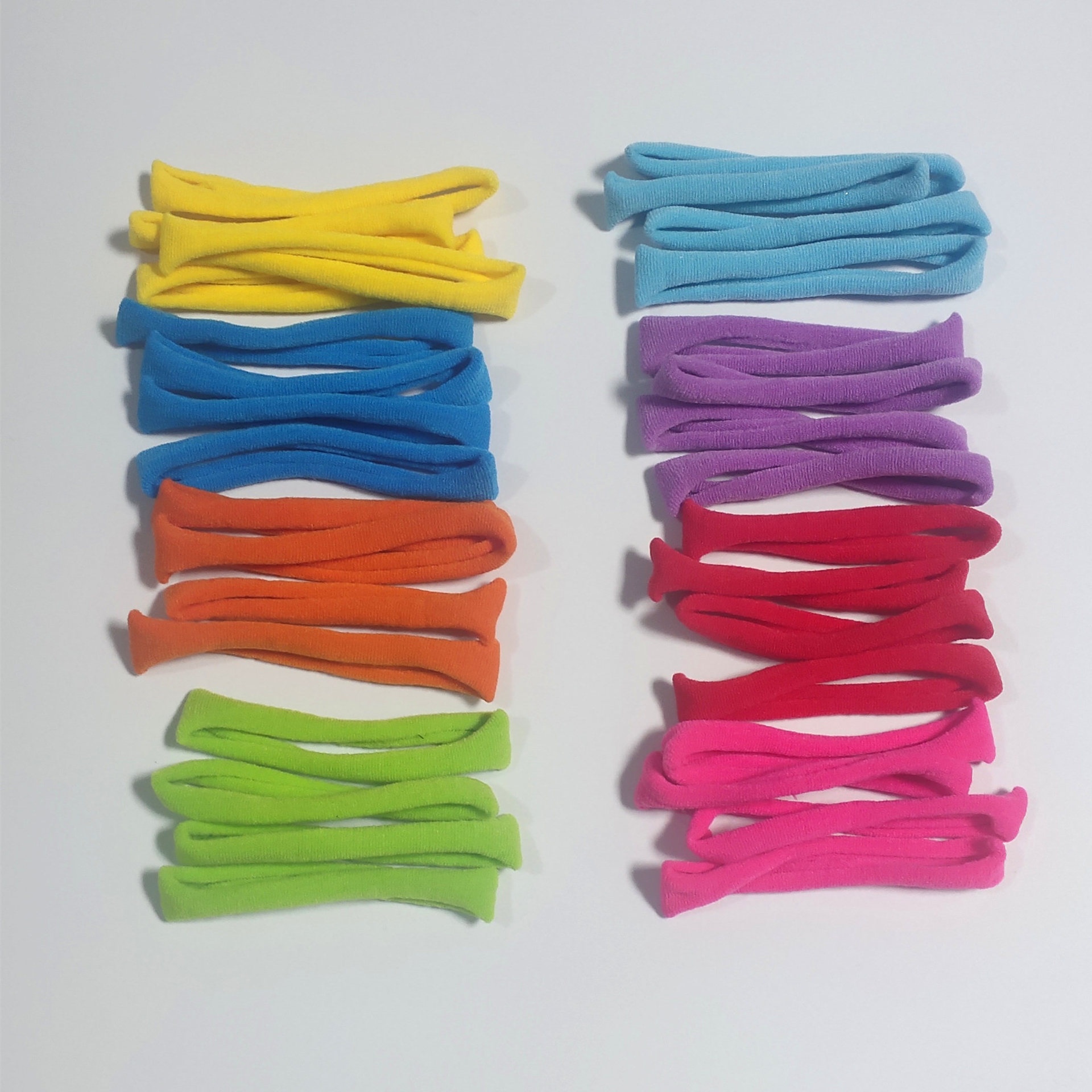 定制毛巾圈自然长度7公分左右,最长拉伸到38公分左右,回弹13公分,宽度1公分左右,单根克重0.7g左右