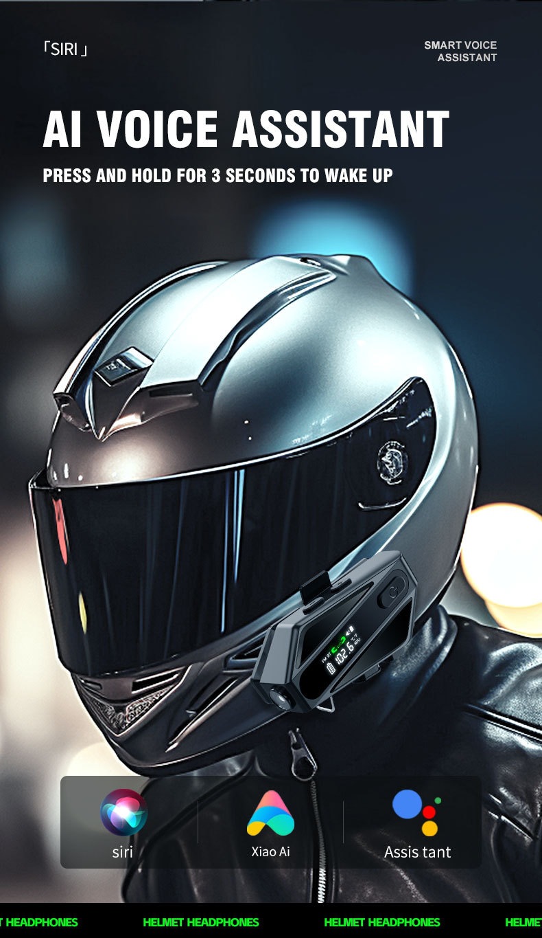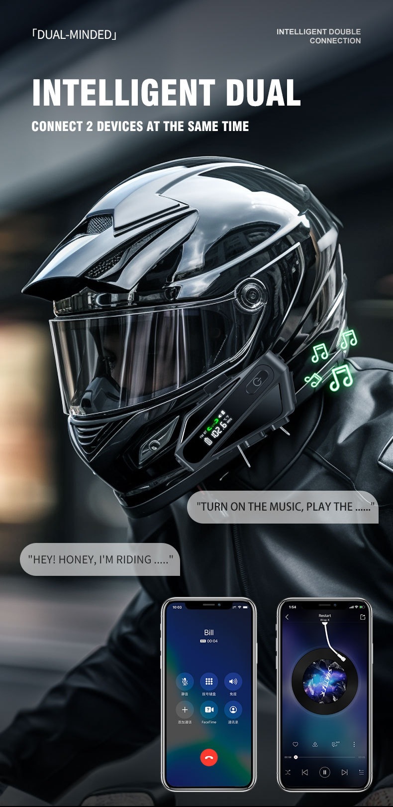 Шлем мотоциклетный C6 с двойным интеркомом и Bluetooth гарнитурой, ЖК экран, радио, интеллектуальное шумоподавление, голосовой помощник