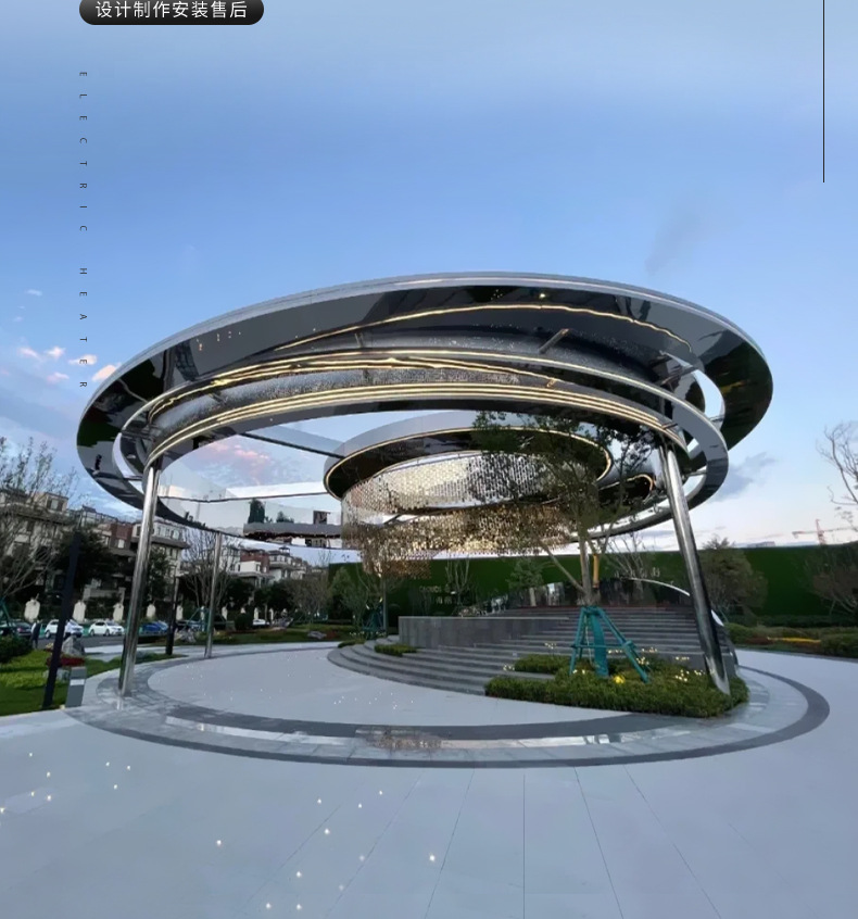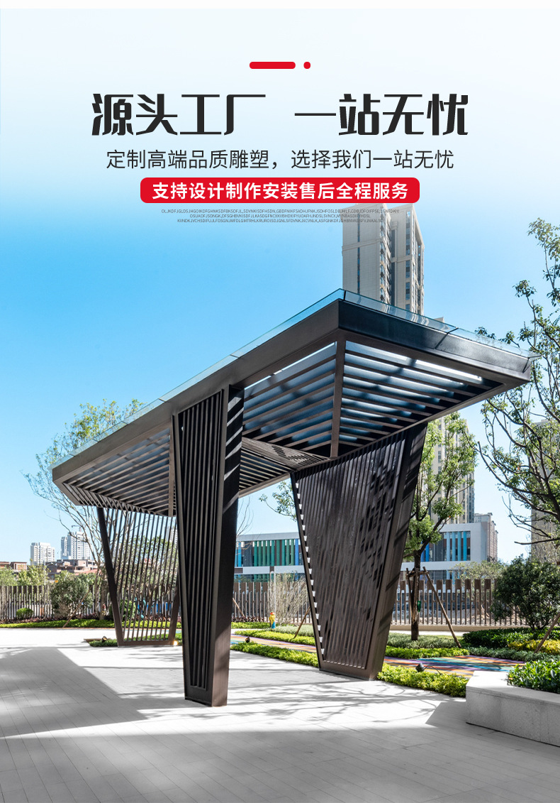 Нержавеющий стальной коридор уличный китайский павильон для сообщества креативный павильон металлический коридор большой живописный район стальной коридор