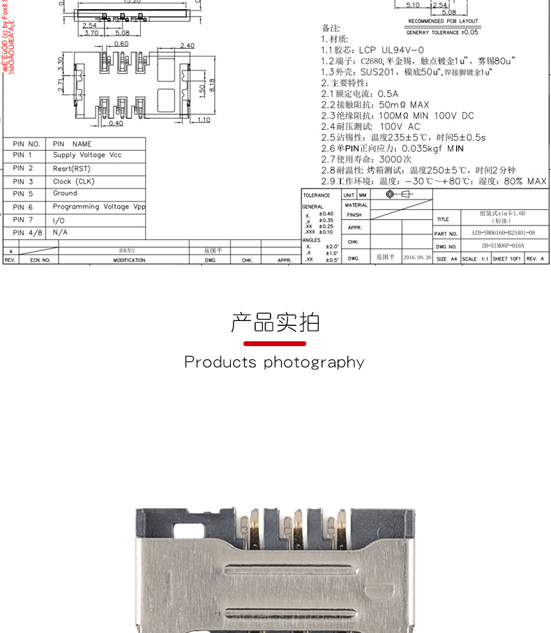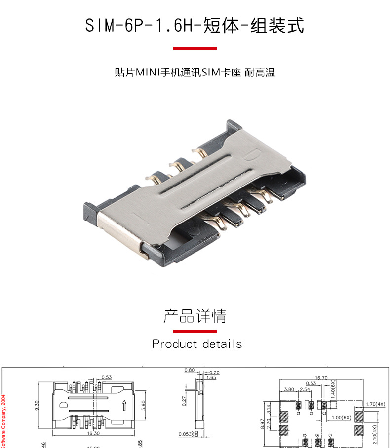 Держатель SIM-карты Mini для мобильного телефона Sim-6P-1.6H с коротким корпусом и высокой температурной стойкостью